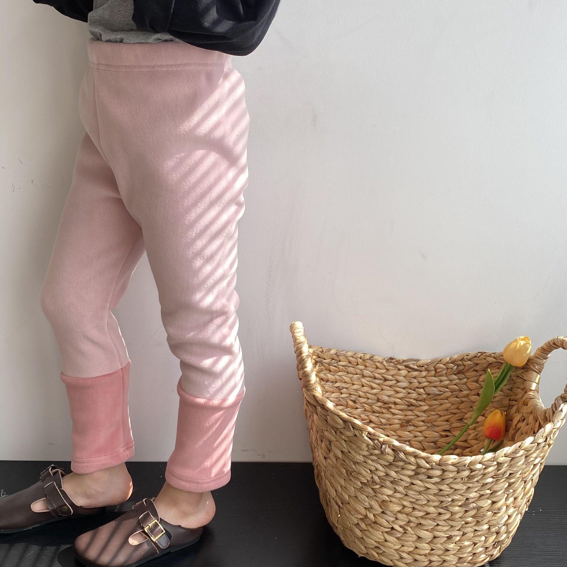 Pantalones de terciopelo grueso y cálido para niñas, ropa infantil coreana, con forro polar y costuras, para invierno