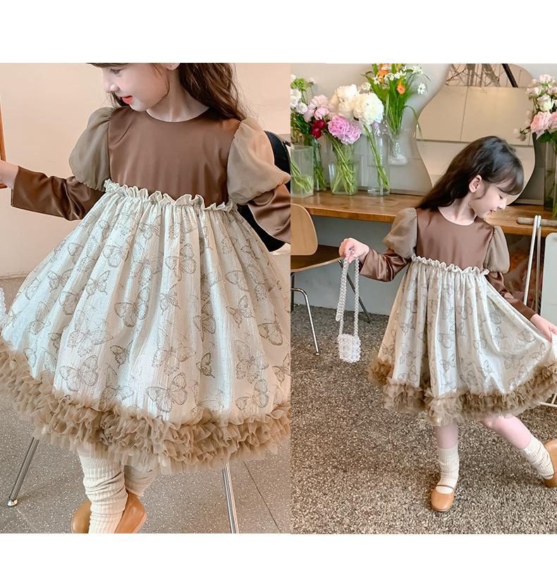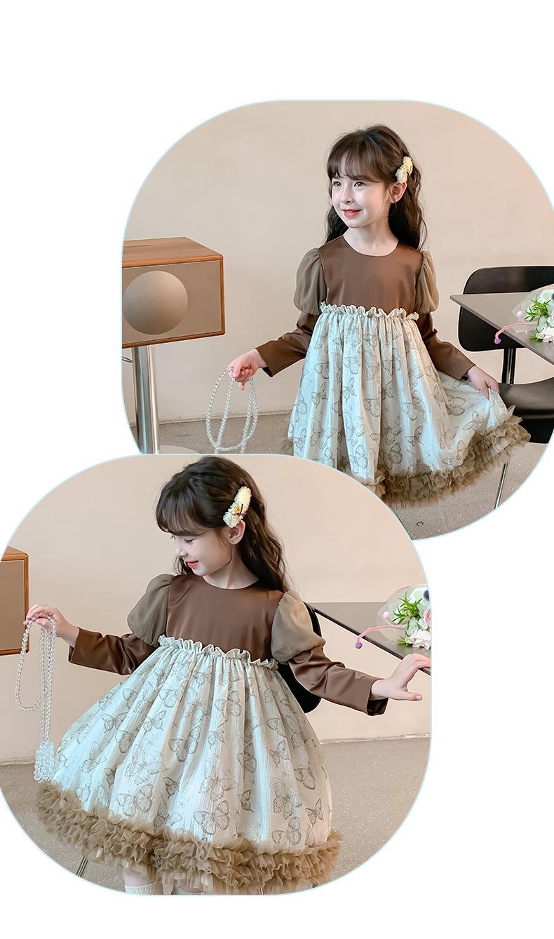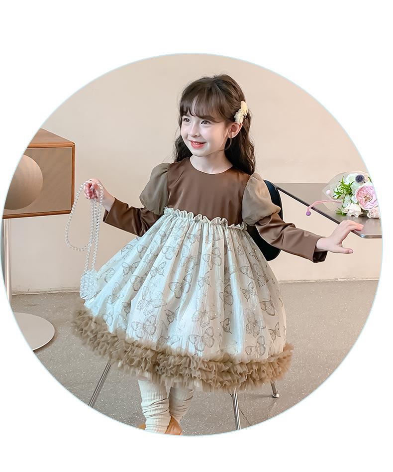 Vestido para Niñas Primavera y Otoño 2025 Nuevo Estilo Infantil de Primavera y Otoño Niñas Pequeñas de Mediana Edad Vestido de Princesa de Manga Larga a la Moda