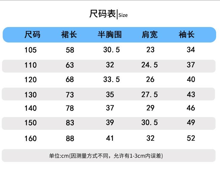 100cm, 110cm, 120cm, 130cm, 140cm, 150cm, 160cm
