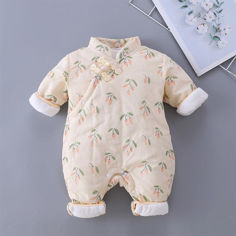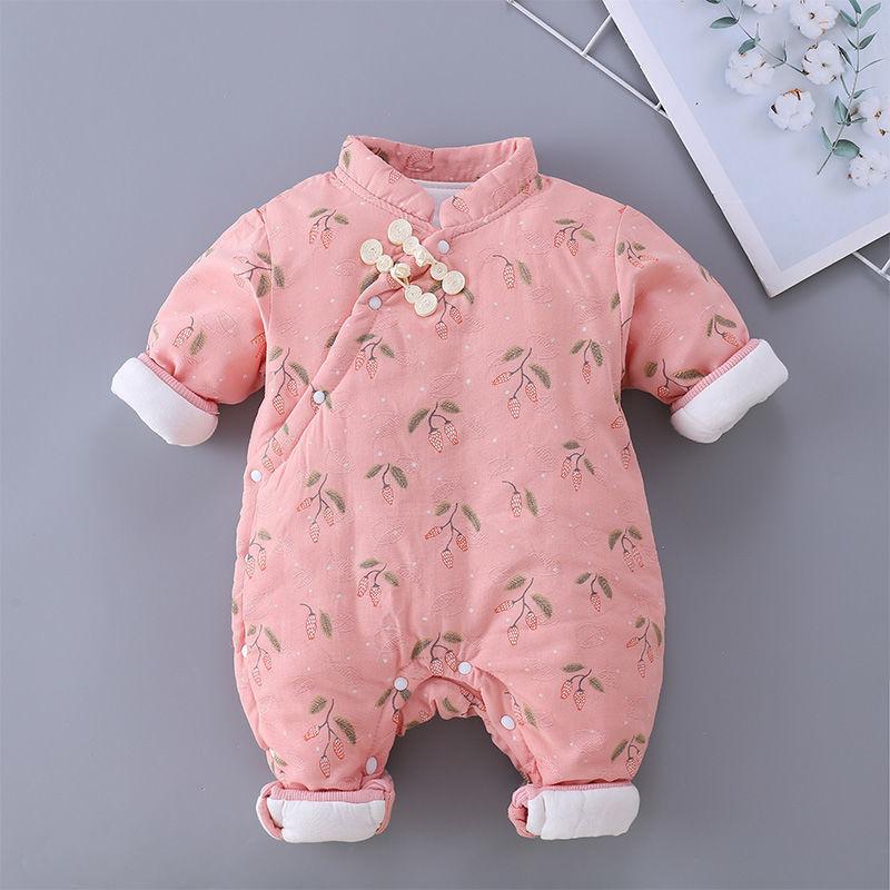 Mono de bebé otoño e invierno de 0 a 3 meses, ropa estilo chino, ropa de abrigo de bebé de puro algodón para salir