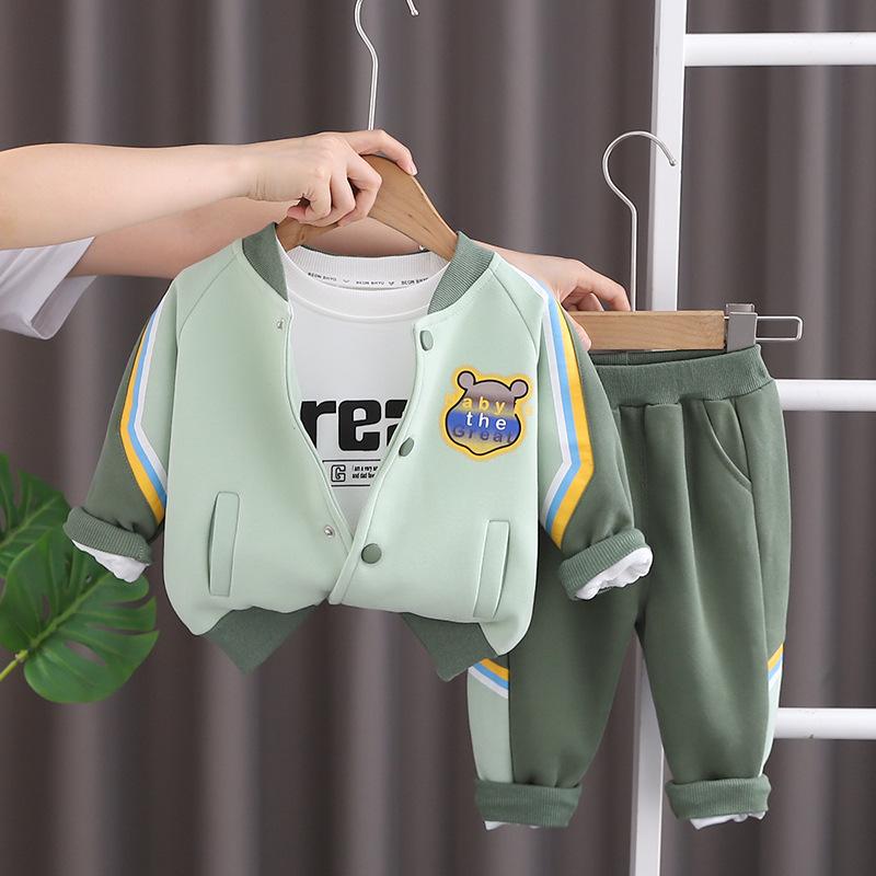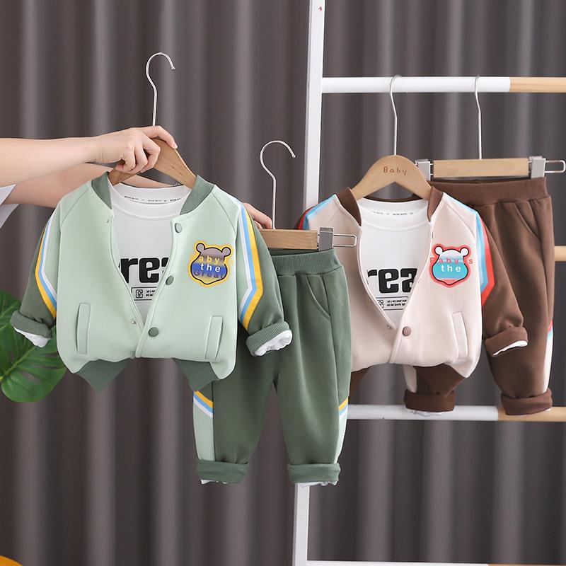 Traje de otoño guapo para niños, primavera y otoño 2023, nueva ropa de bebé, ropa de bebé para niños, conjunto de tres piezas de oso de color