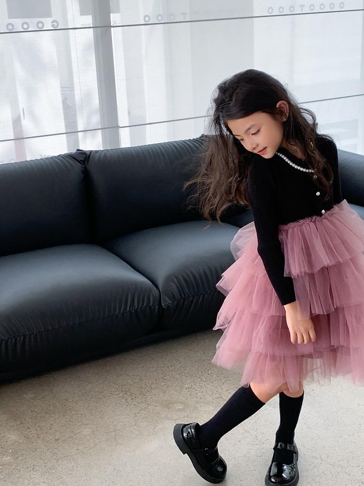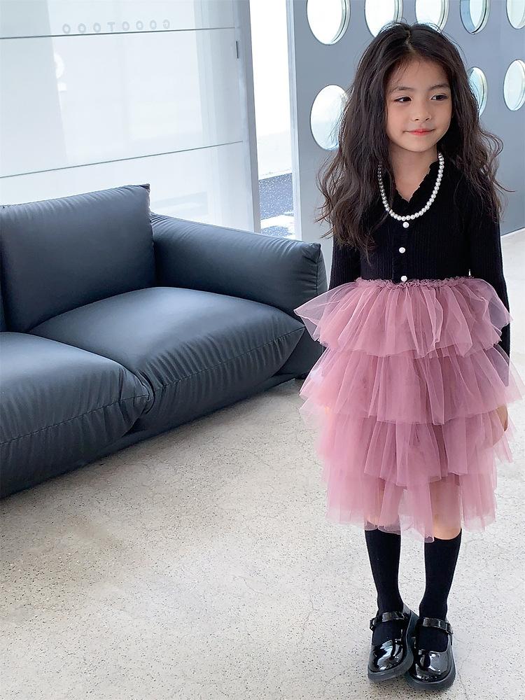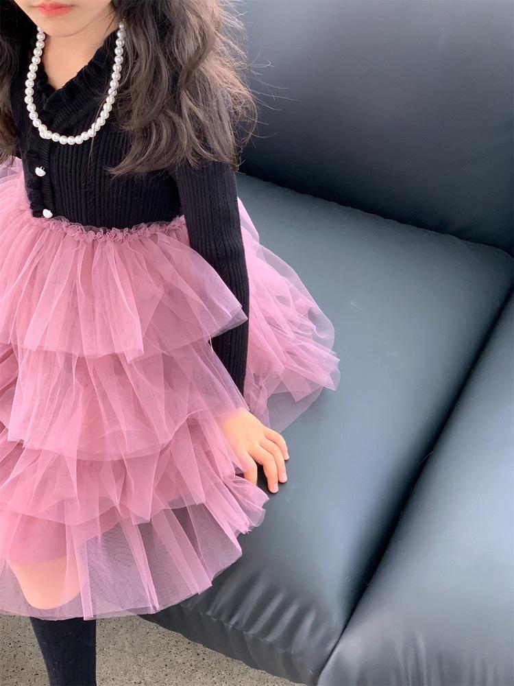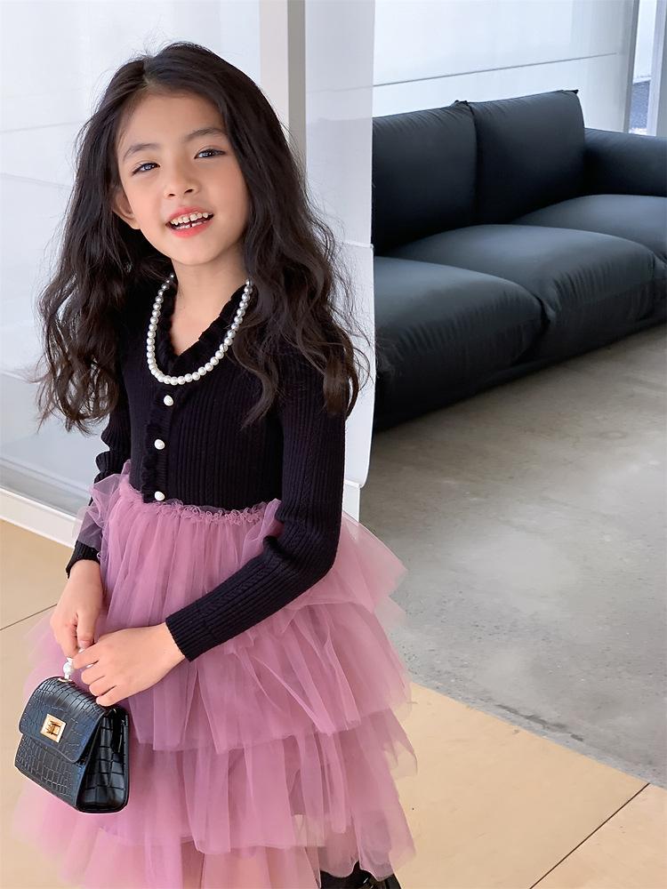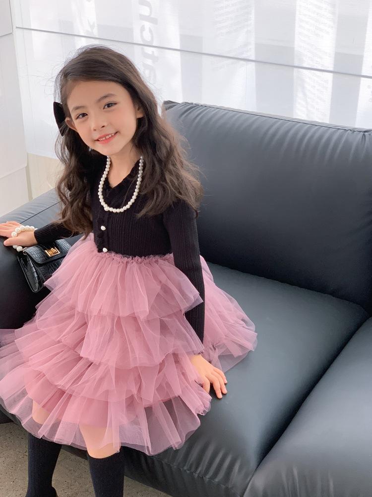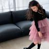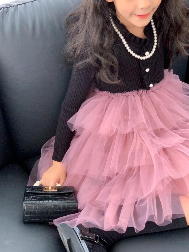 Vestido de niña 2024 Otoño Nuevo Diseño Sensación Temperamento Vestido de Princesa Elegante Vestido de Malla de Lana para Niña