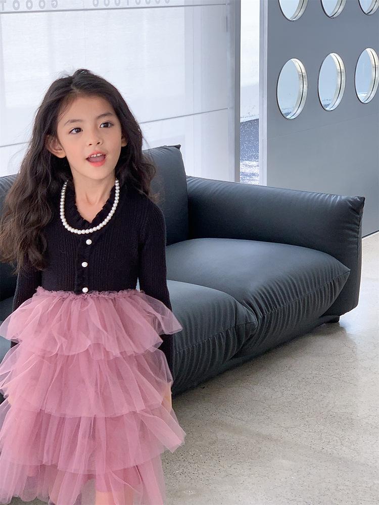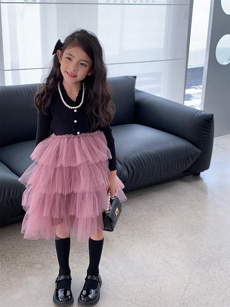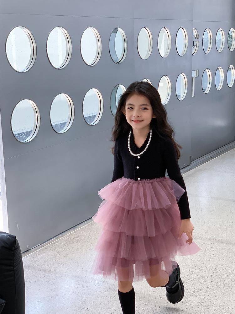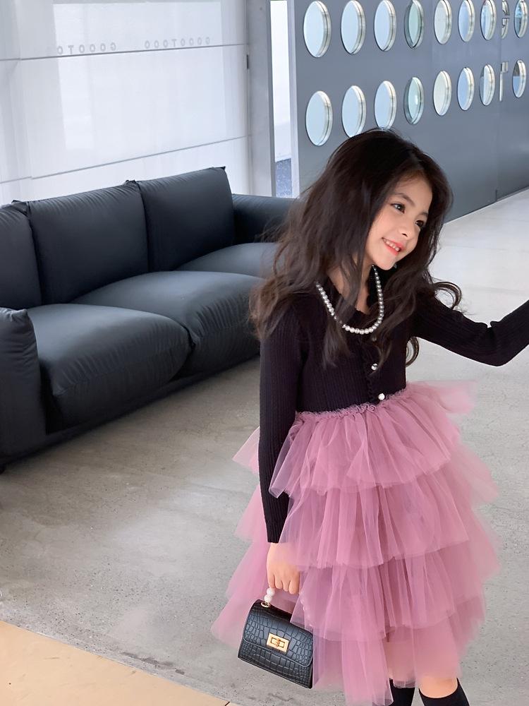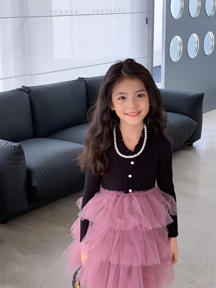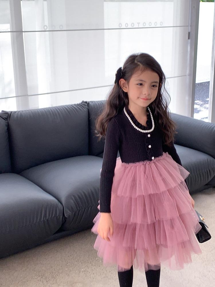 Vestido de niña 2024 Otoño Nuevo Diseño Sensación Temperamento Vestido de Princesa Elegante Vestido de Malla de Lana para Niña