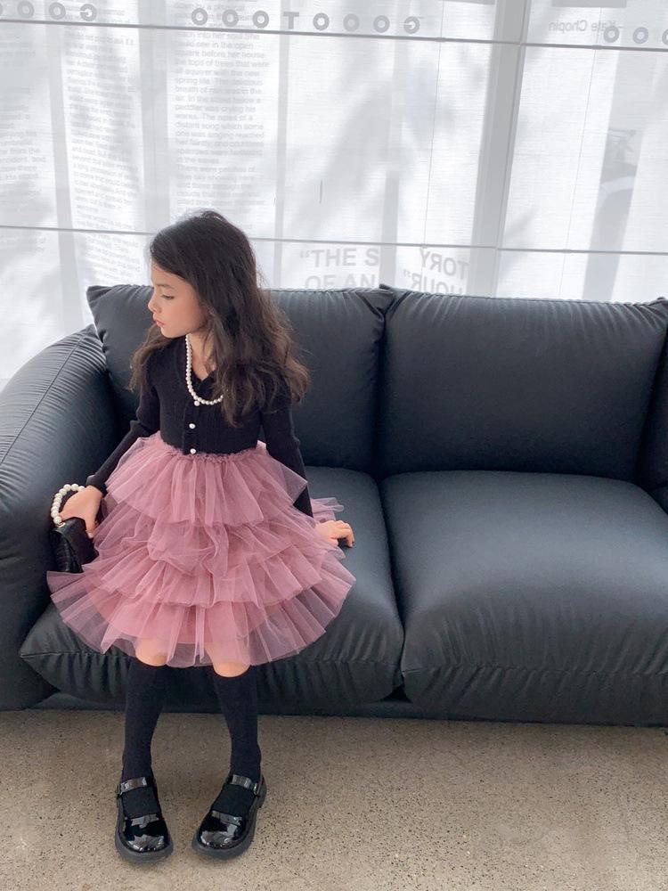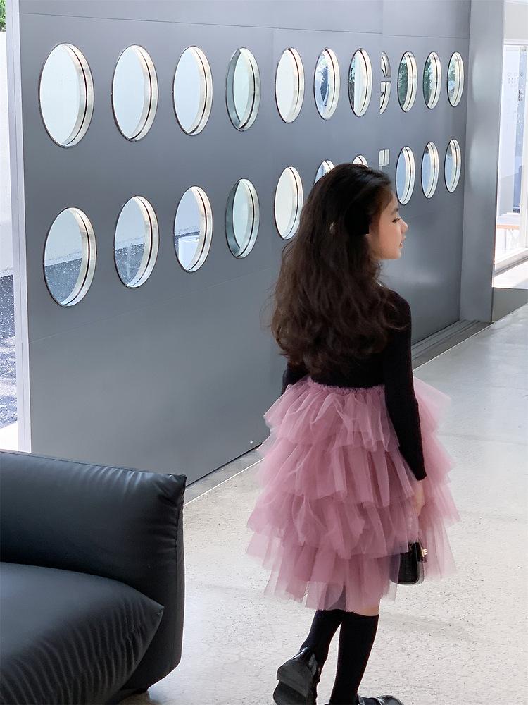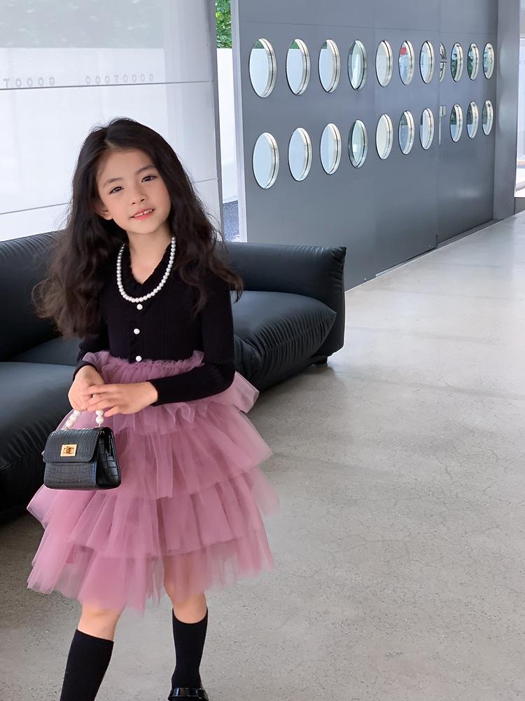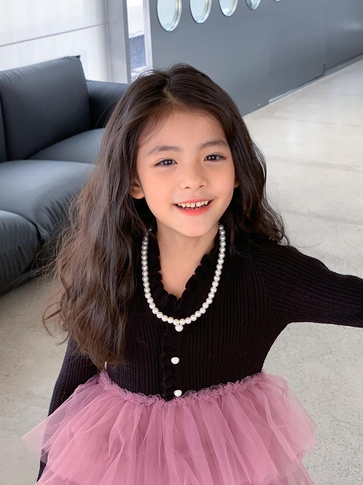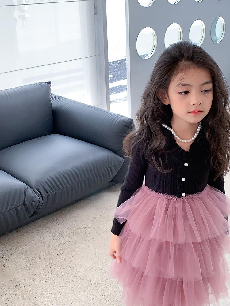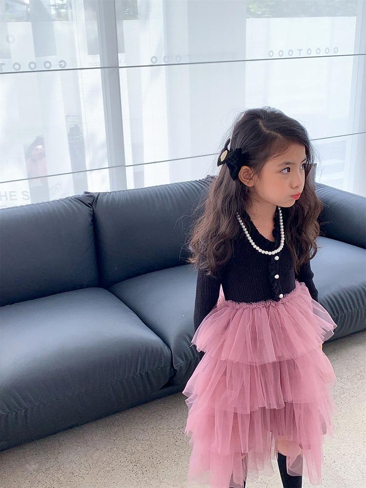 Vestido de niña 2024 Otoño Nuevo Diseño Sensación Temperamento Vestido de Princesa Elegante Vestido de Malla de Lana para Niña