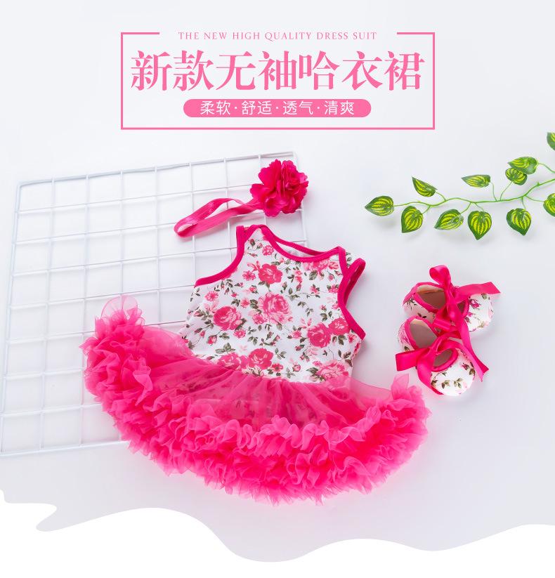 Venta directa de fábrica de ropa para bebés reborn, venta al por mayor, ropa de muñeca de simulación de 55 cm, mono sin mangas, zapatos, tocado, traje