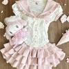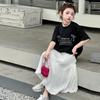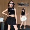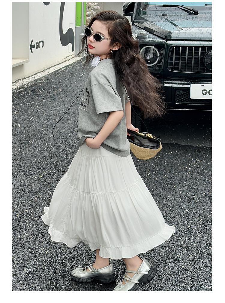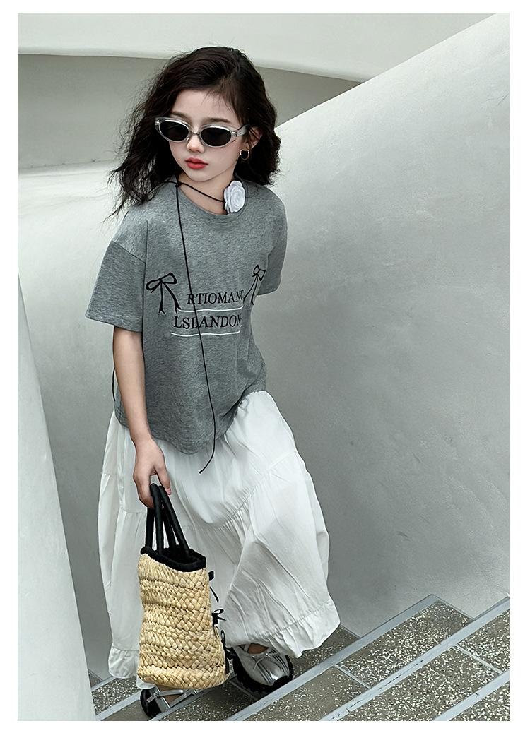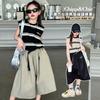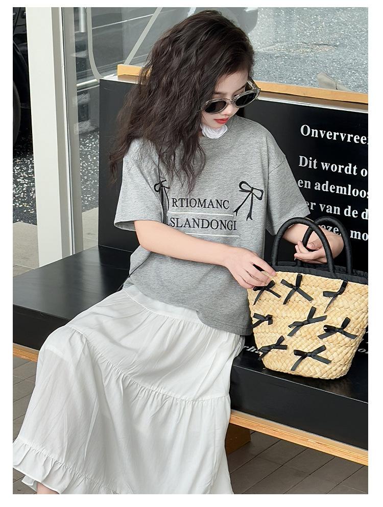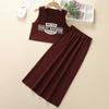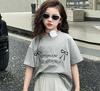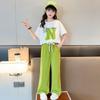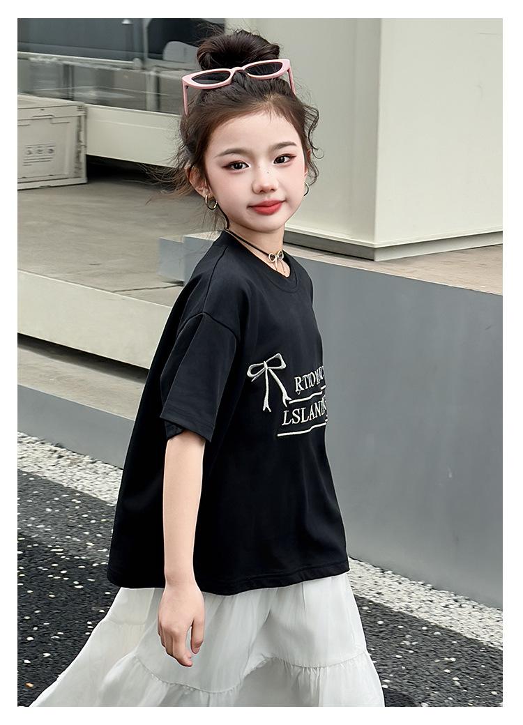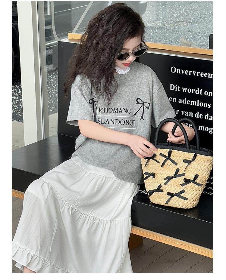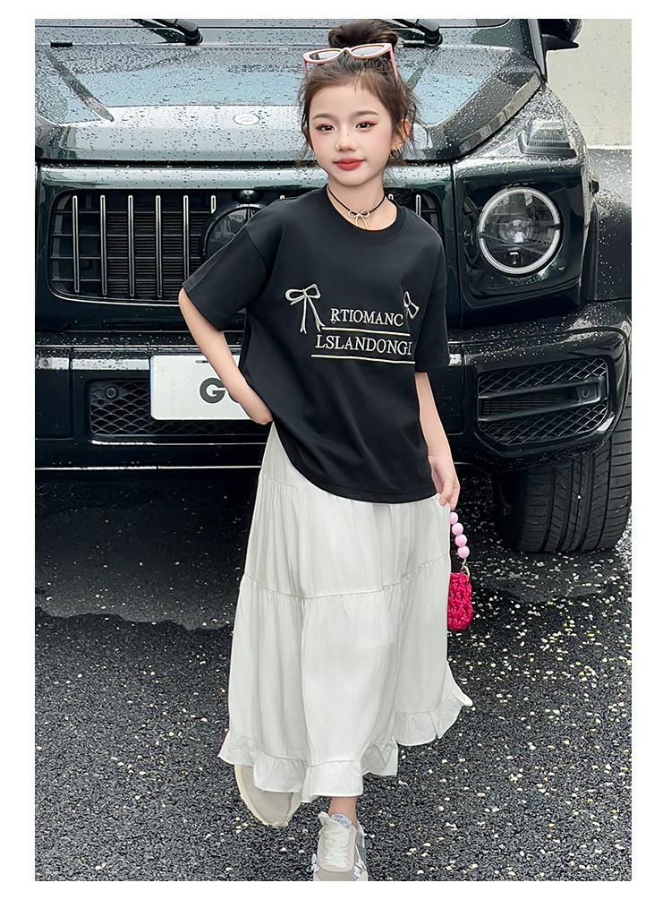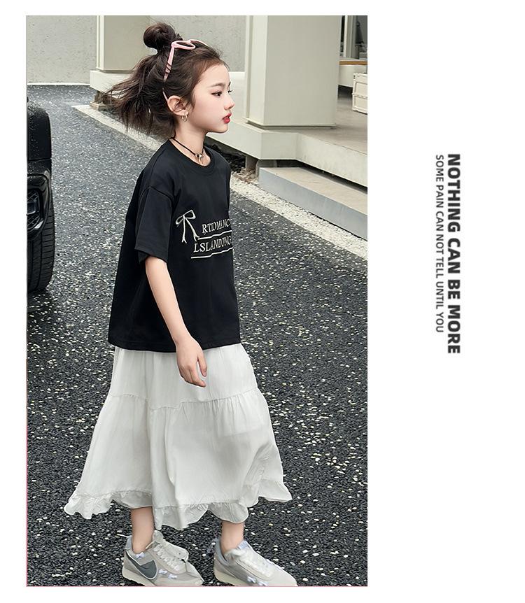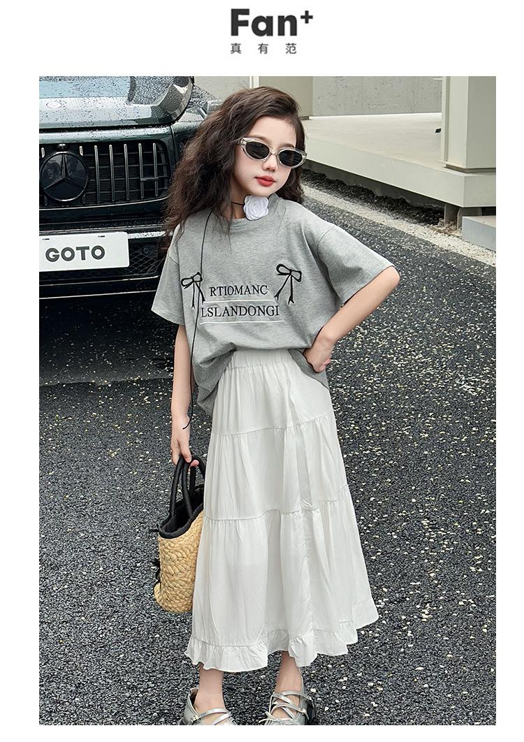 Traje de verano para niñas 2024, nuevo estilo occidental, conjunto de dos piezas fino de moda de verano para niñas de talla mediana a grande, con falda de media longitud y manga corta