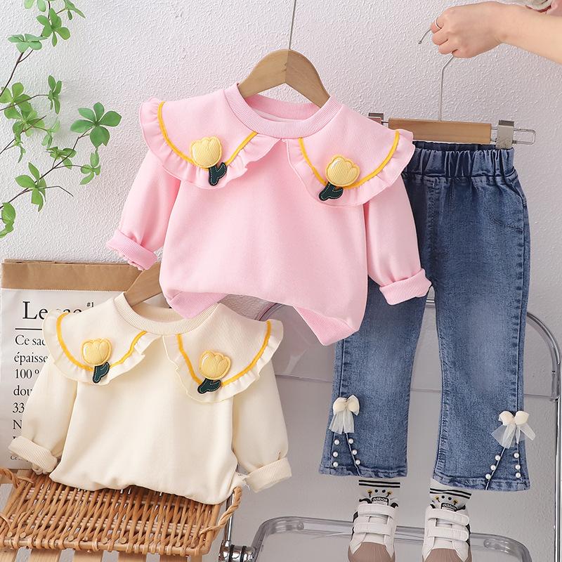 Ropa de moda para niñas estilo occidental 2024 nueva ropa de primavera traje de bebé primavera y otoño conjunto de tulipán de dos piezas para niños entrega de una pieza