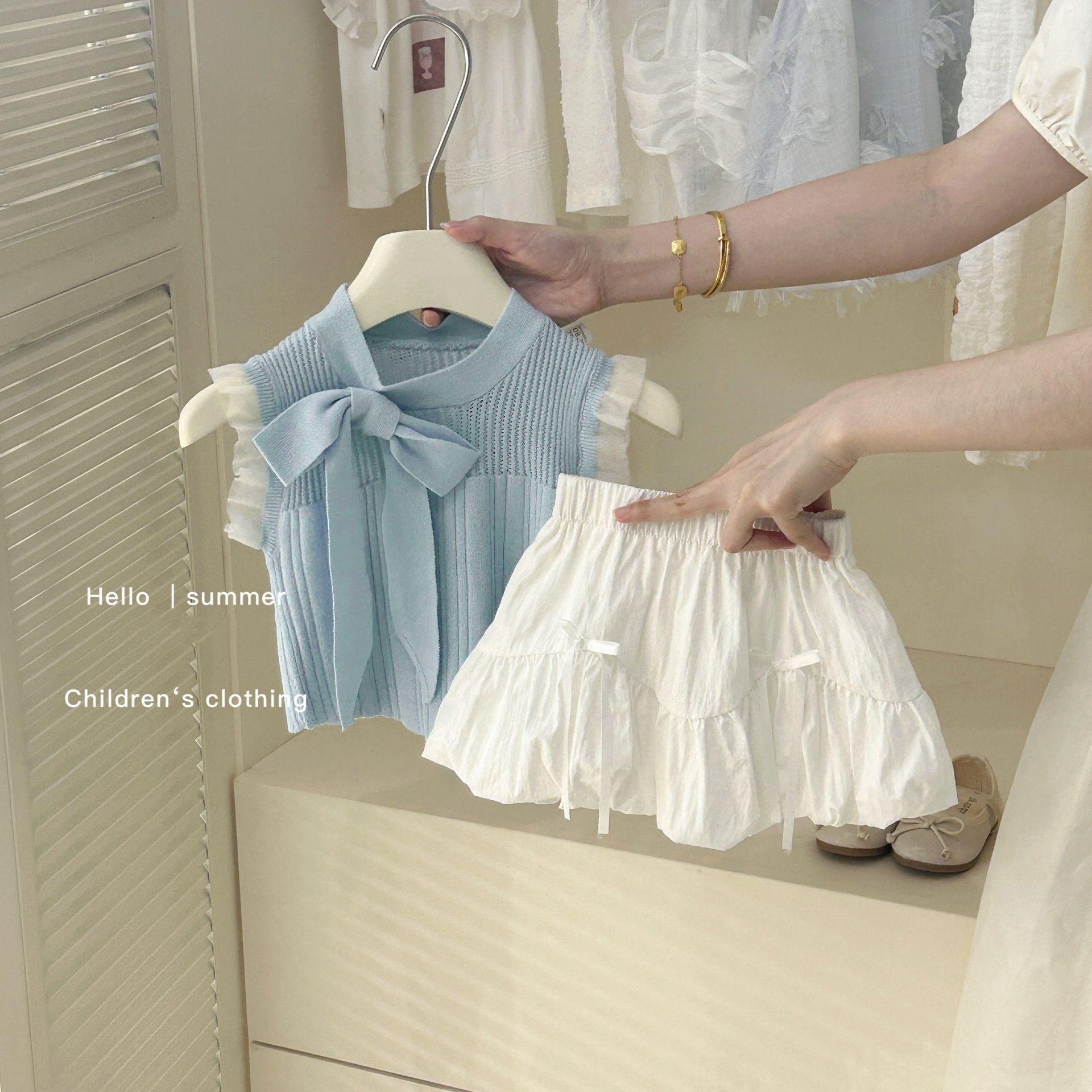 Dulce Conjunto de Bebé 2025 Nueva Moda Infantil Top de Punto con Lazo y Falda de Flores Conjunto de Dos Piezas