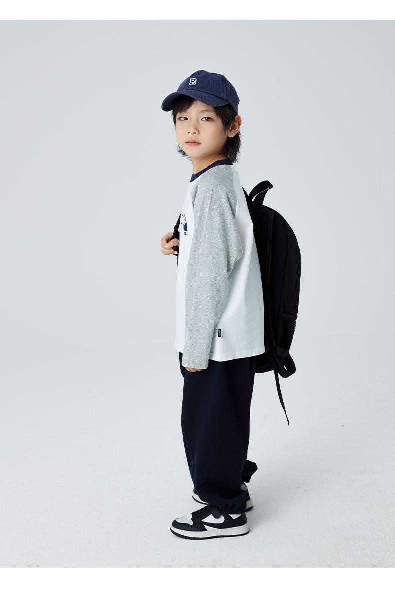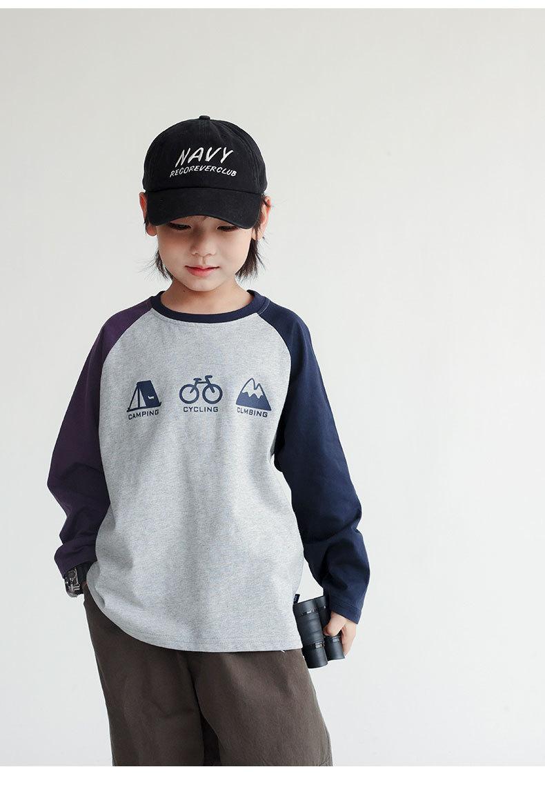 Camiseta para niños, otoño 2024, nueva camiseta informal de estilo japonés con mangas raglán estampadas, elegante y moderna.