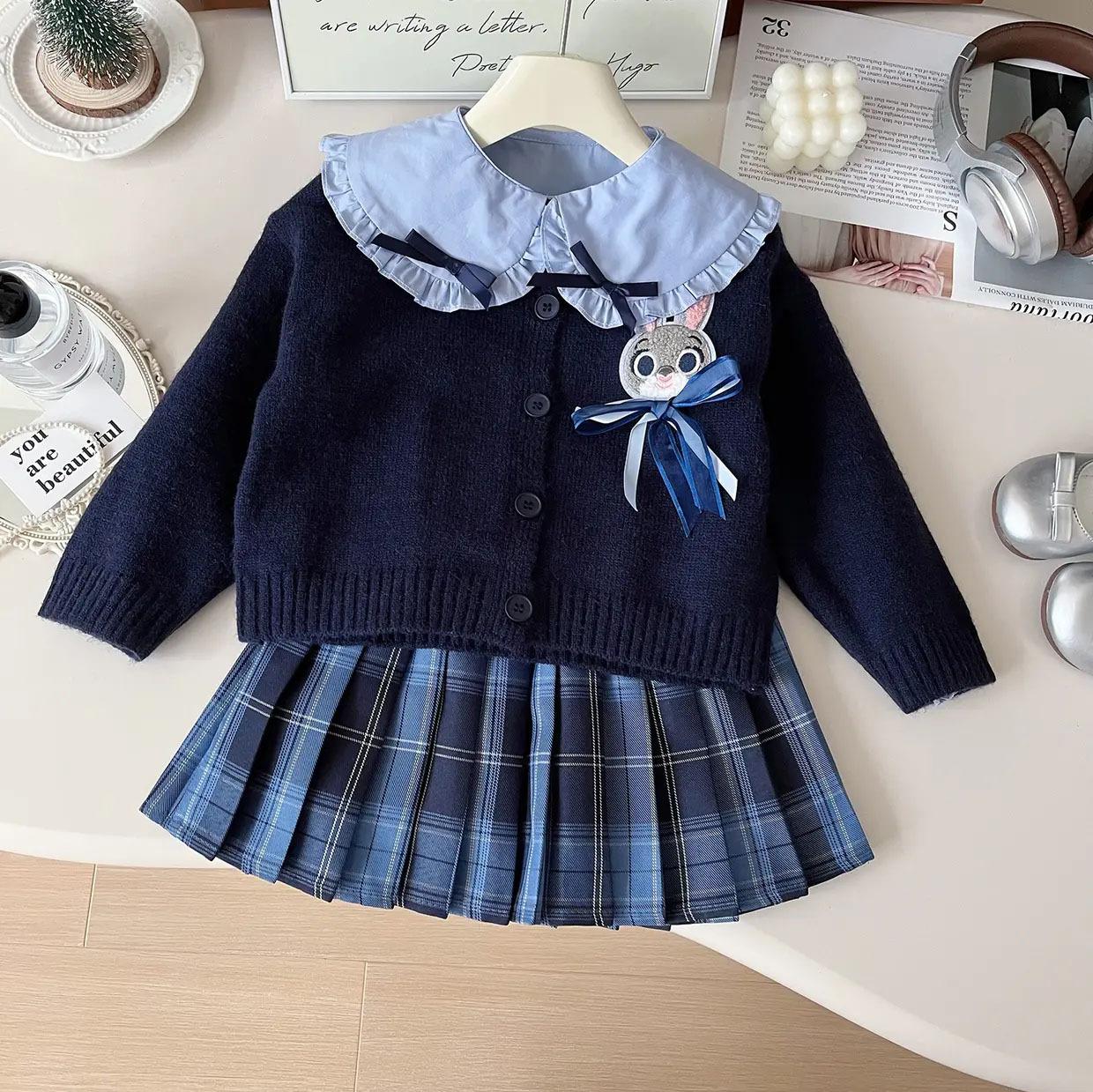 Traje Jk de Estilo Escolar de Conejita Oficial de Policía para Niña Dulce Primavera y Otoño 25 Nuevo Estilo Falda para Niños Conjunto de Tres Piezas