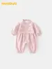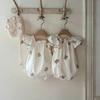 Mono de bebé de primavera y otoño, de algodón puro, con mangas largas, gorro y cuello redondo con volantes, ropa de escalada de moda.
