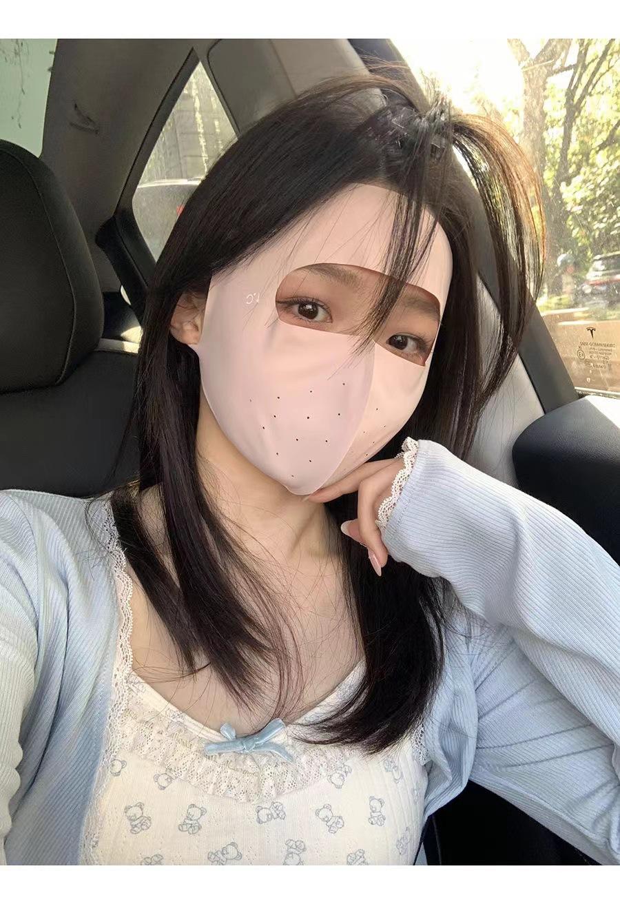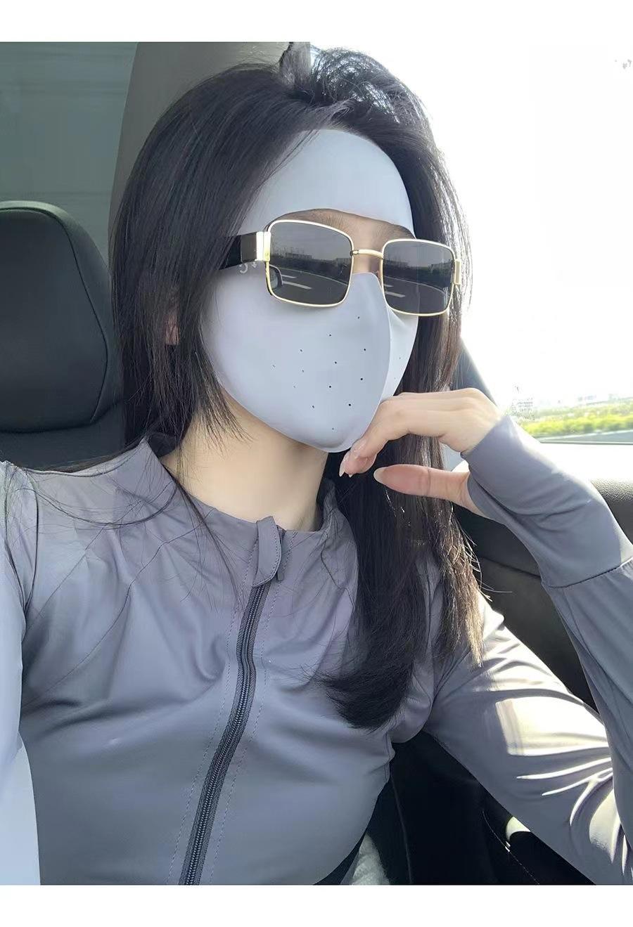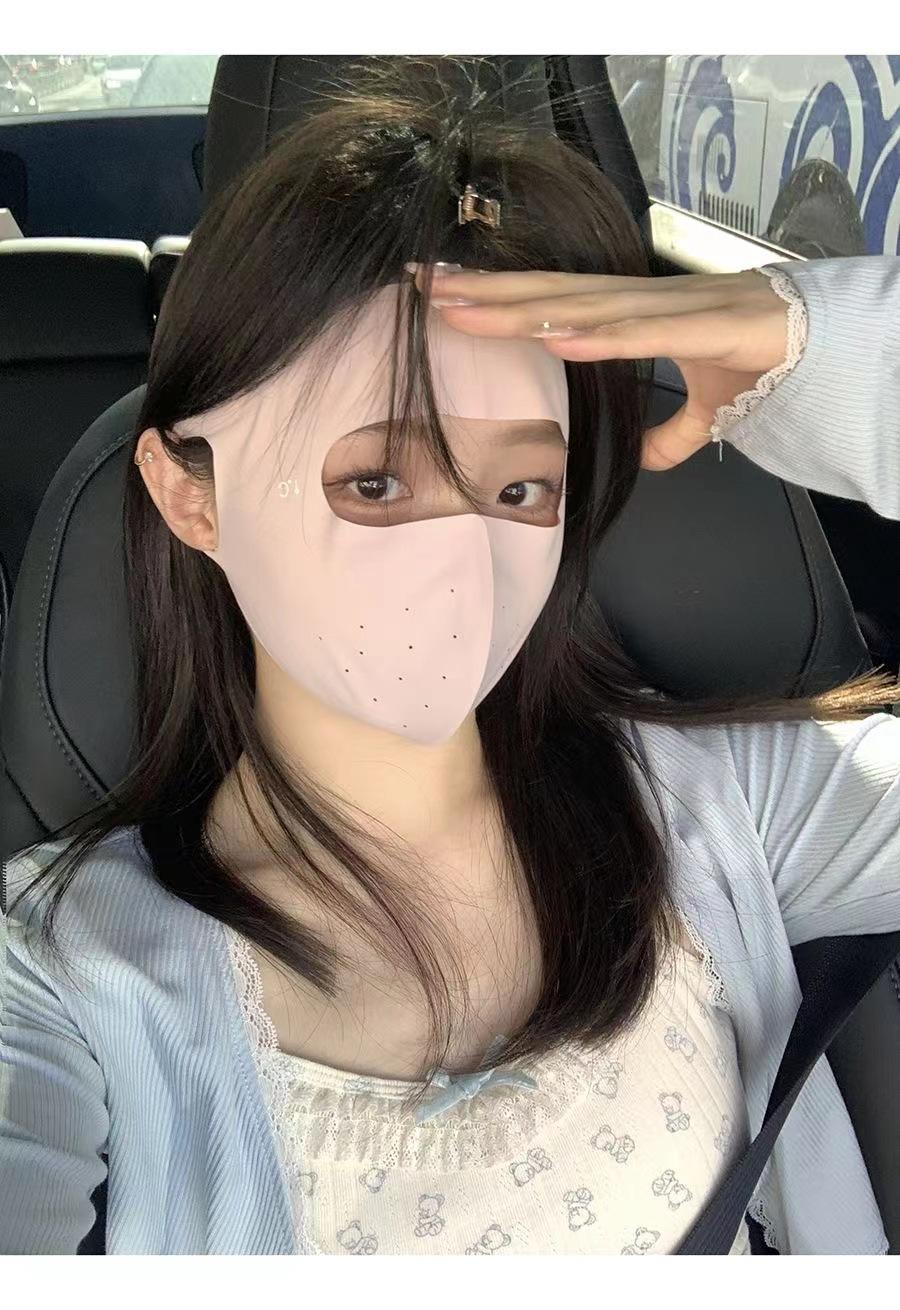 Mascarilla Solar de Cara Completa para Mujer Protección UV Verano Conducción Protección Facial Gini Sombreado Seda de Hielo Máscara para Ojos