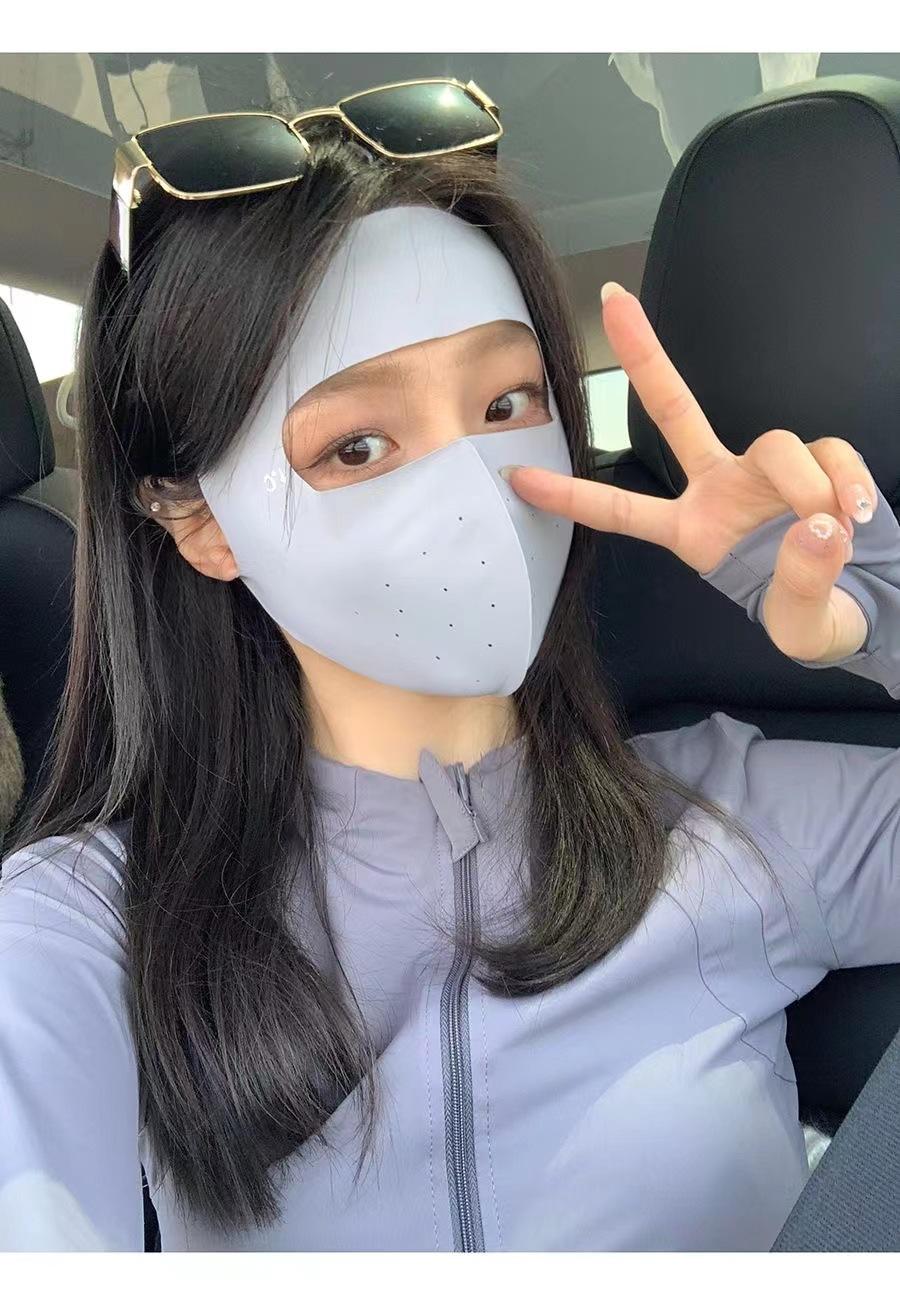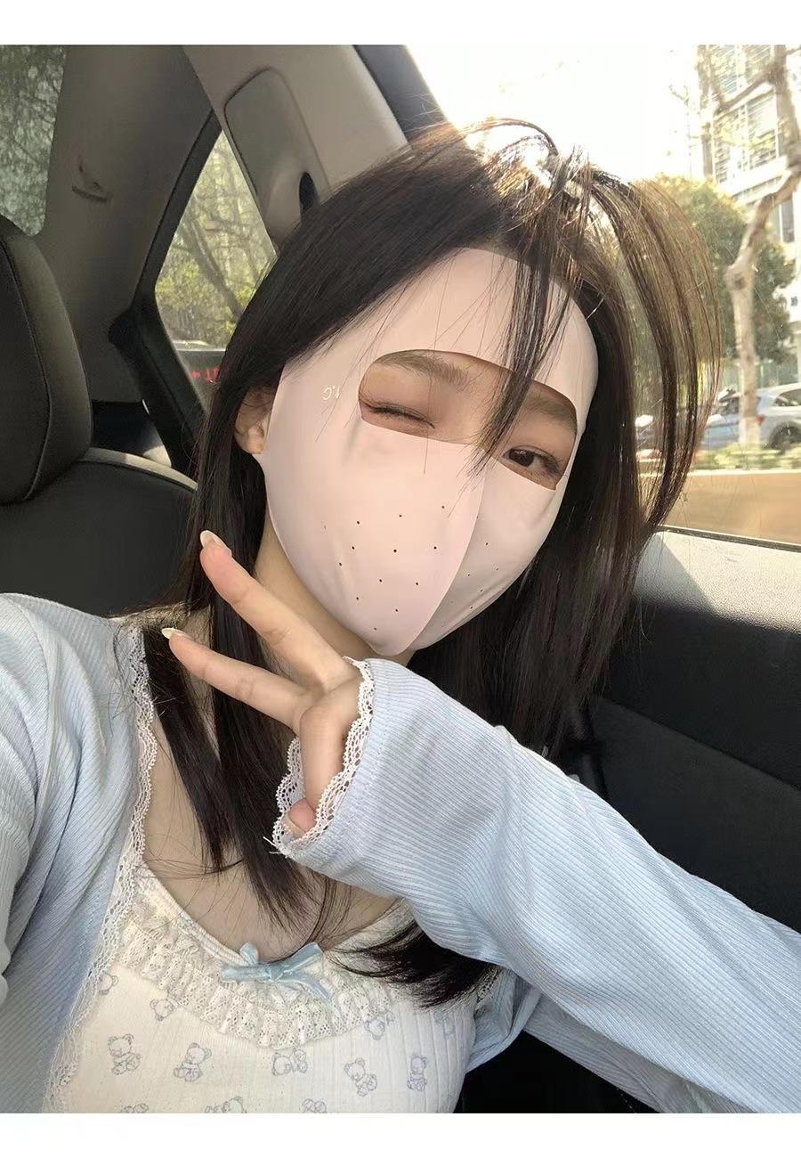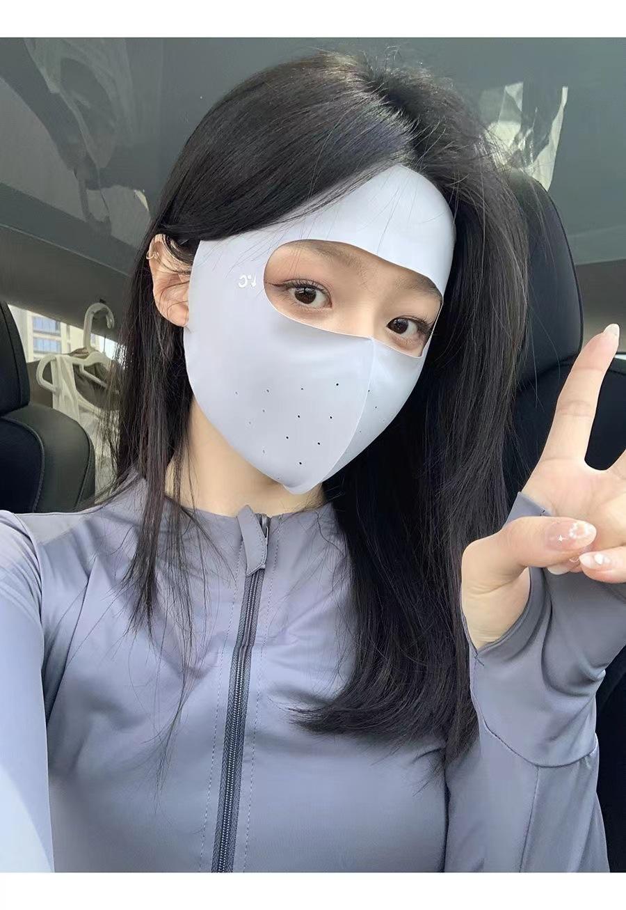 Mascarilla Solar de Cara Completa para Mujer Protección UV Verano Conducción Protección Facial Gini Sombreado Seda de Hielo Máscara para Ojos