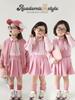 Wurib Traje estilo universitario para una niña Otoño Diamante Sésamo Punto Jacquard Chaleco Suéter Camisa Falda Plisada