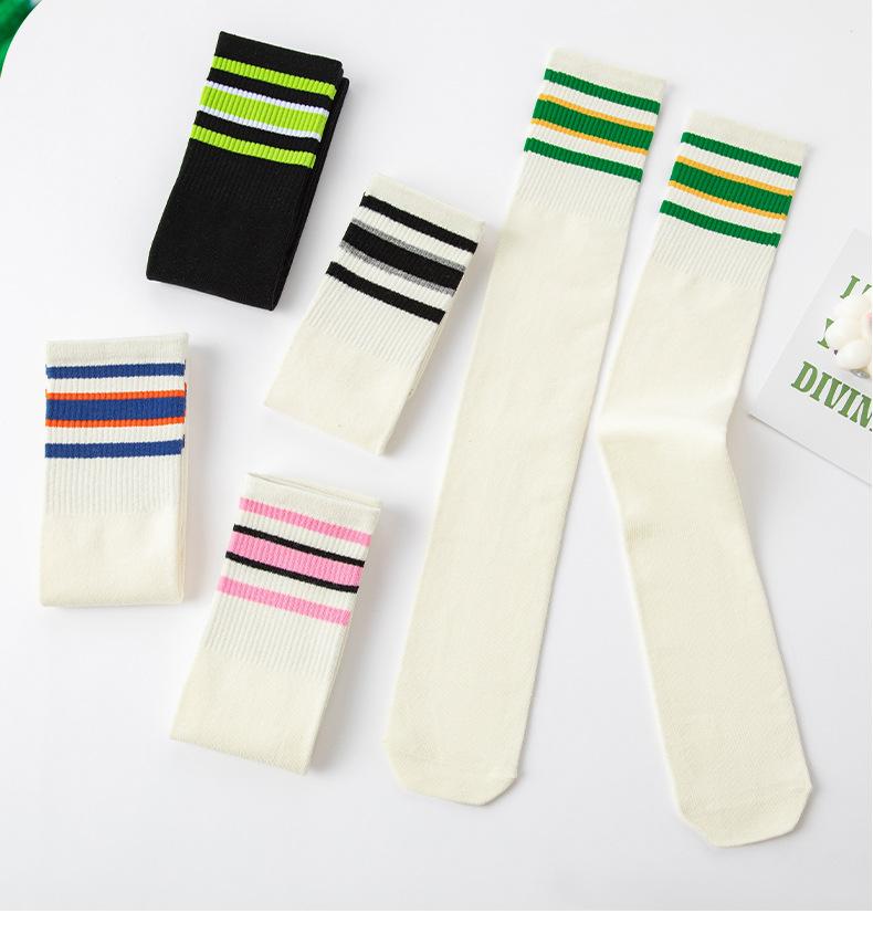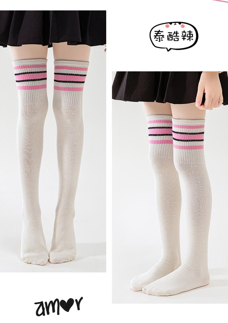 2024 otoño nuevo estilo deportivo calcetines a rayas para niños estilo académico calcetines hasta la pantorrilla calcetines hasta la rodilla para niñas