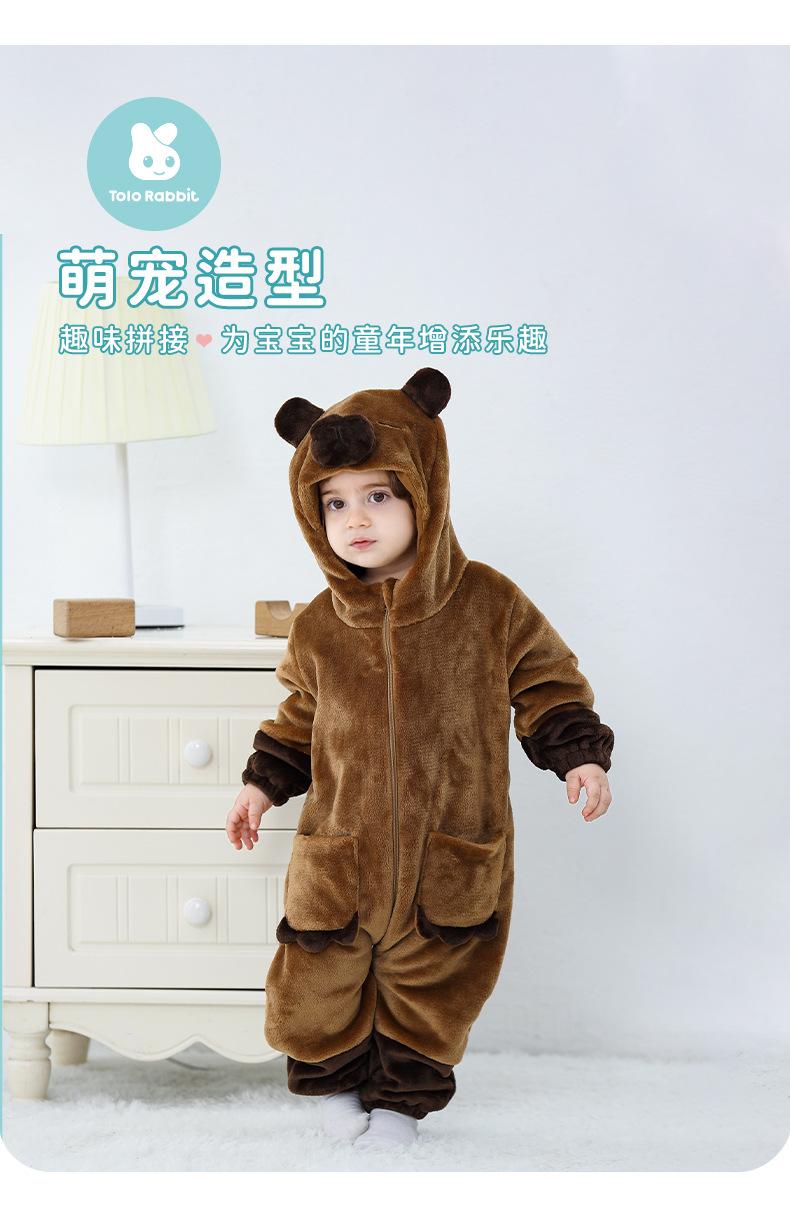 Qilo Rabbit Otoño Nuevo Bebé 0-3 Franela de una sola capa con forma de puerto Con forma de puerto Con forma de puerto De una pieza con forma de puerto