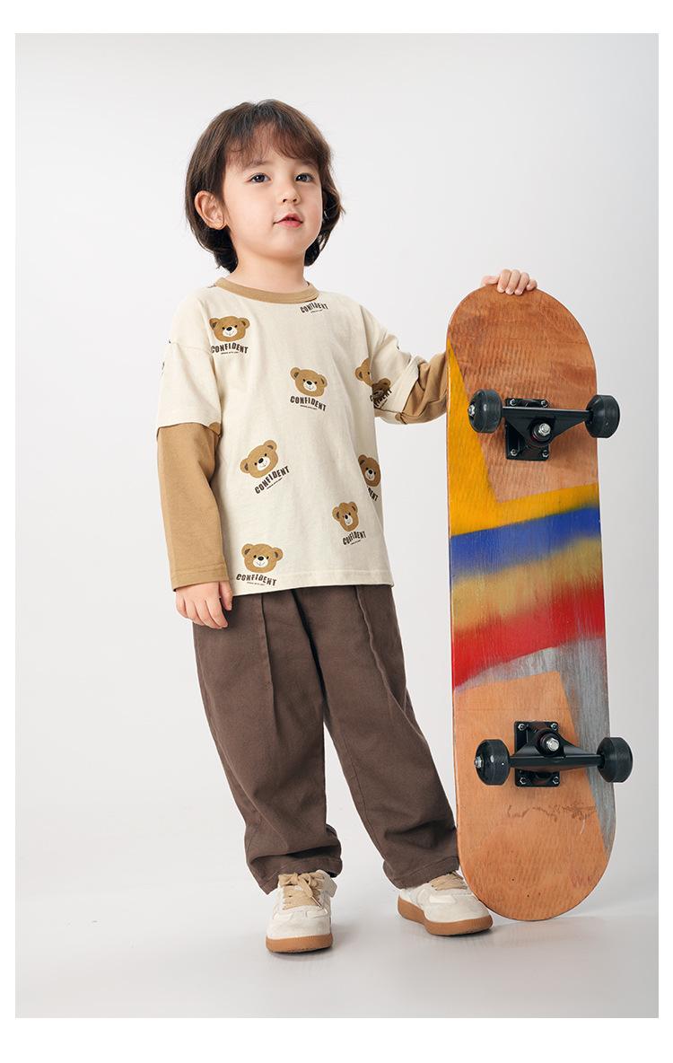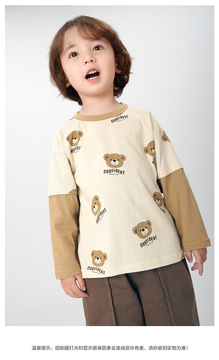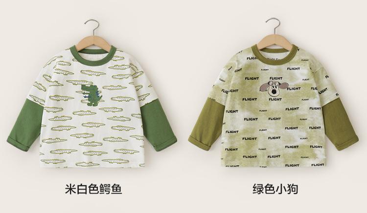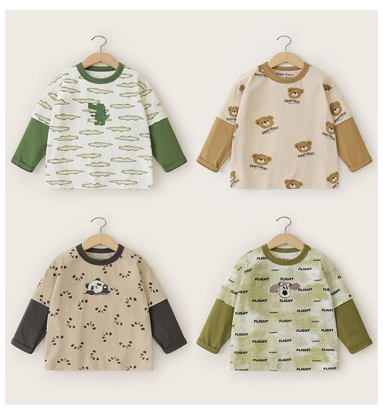 Camiseta de Manga Larga para Niño de Dos Piezas Falsas, Estilo Primavera y Otoño, Ropa Infantil Nueva de Primavera, Camiseta Básica para Niño Pequeño, Cómodo Conjunto de Primavera