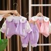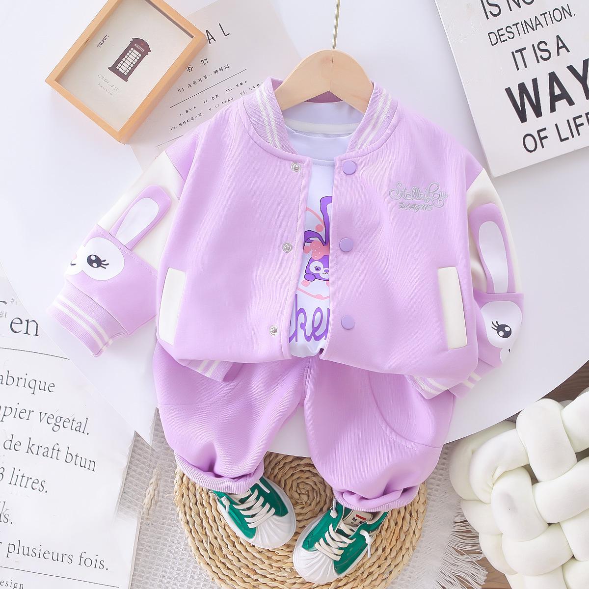 Ropa de moda para niñas pequeñas, otoño 2024, nuevo estilo, sudadera informal, cárdigan, conjunto de tres piezas, ropa para bebés de 1 a 3 años.