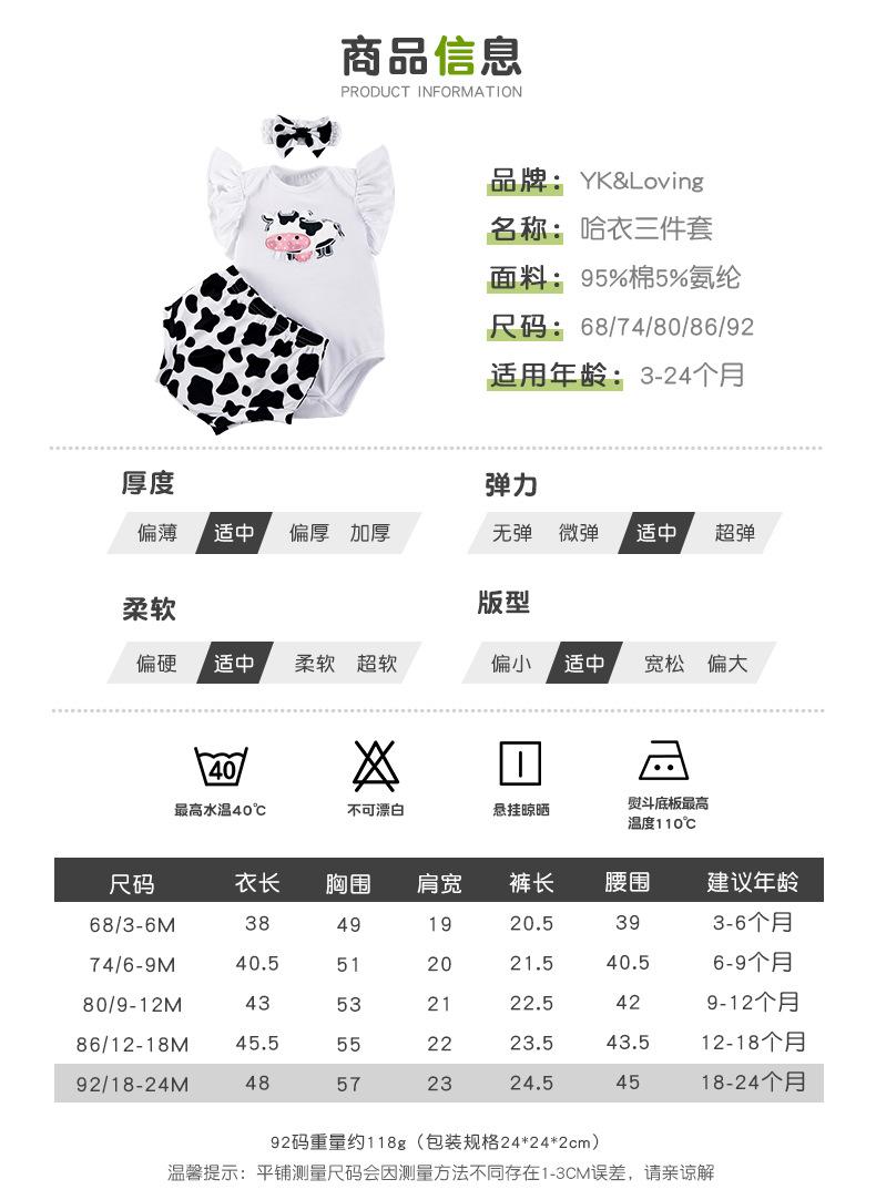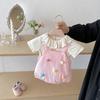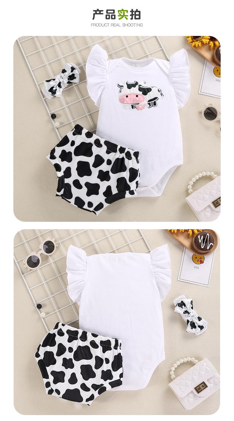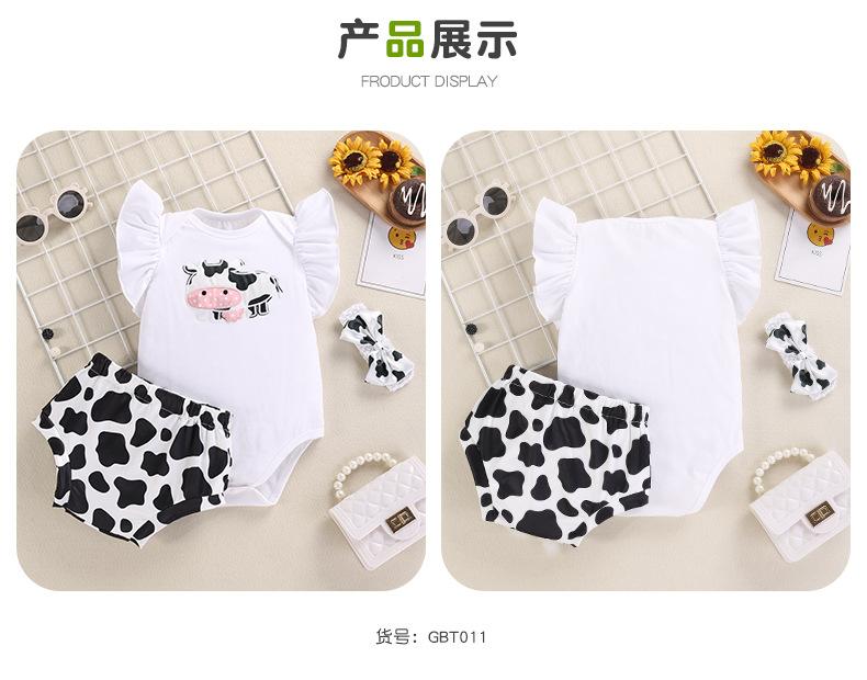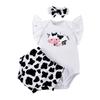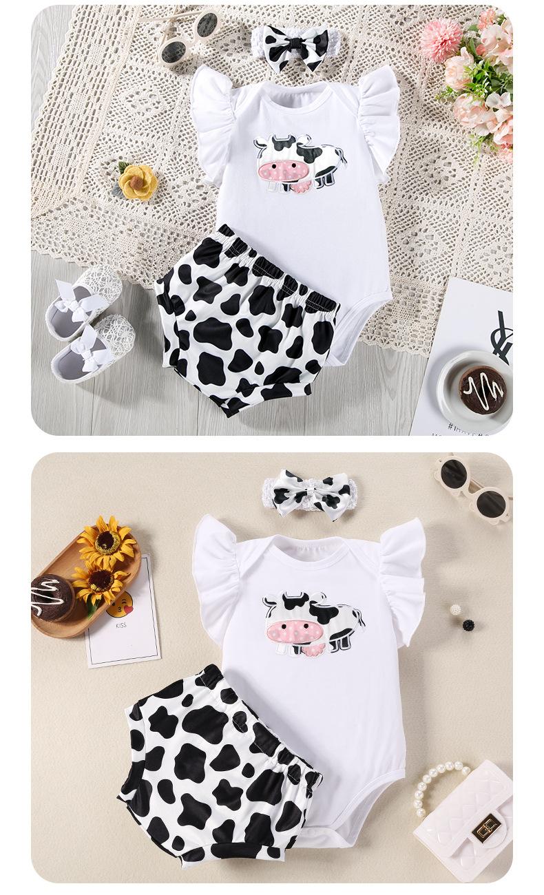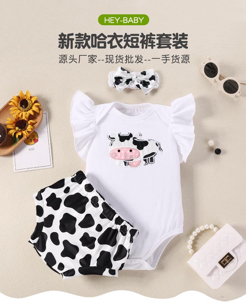 Traje de verano para bebé, mono de manga voladora pequeña de dibujos animados, conjunto de 3 piezas, ropa para niña, ropa para niña, dulce y fina