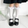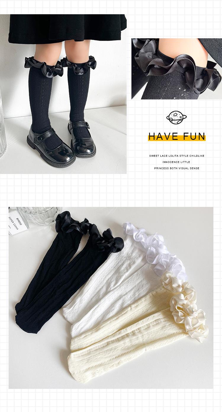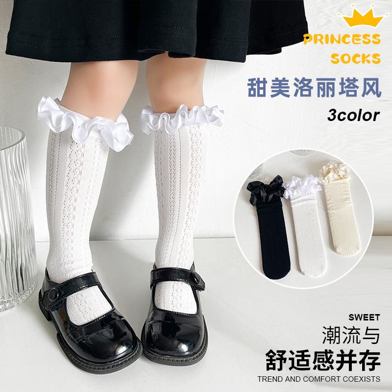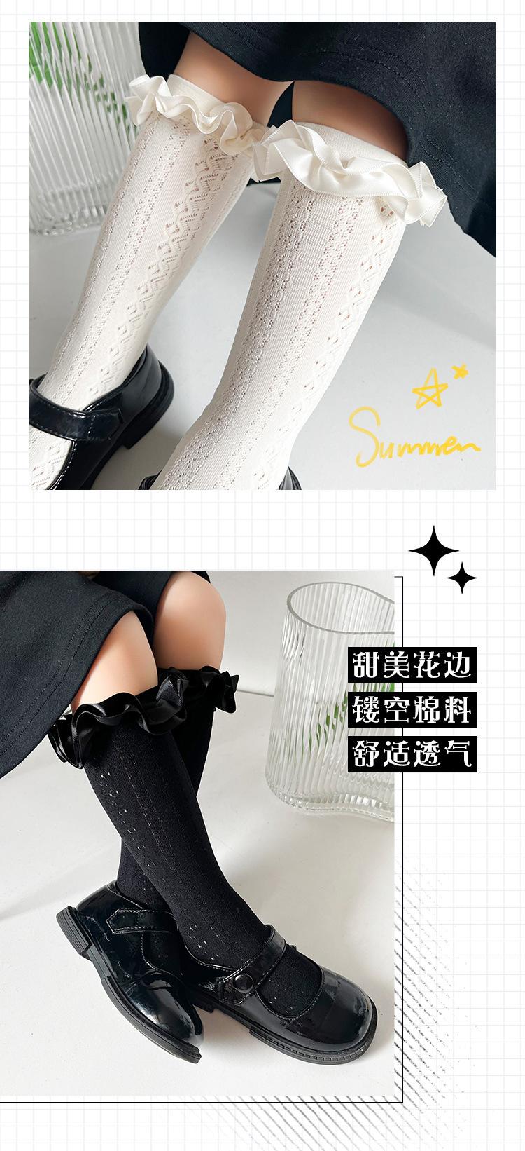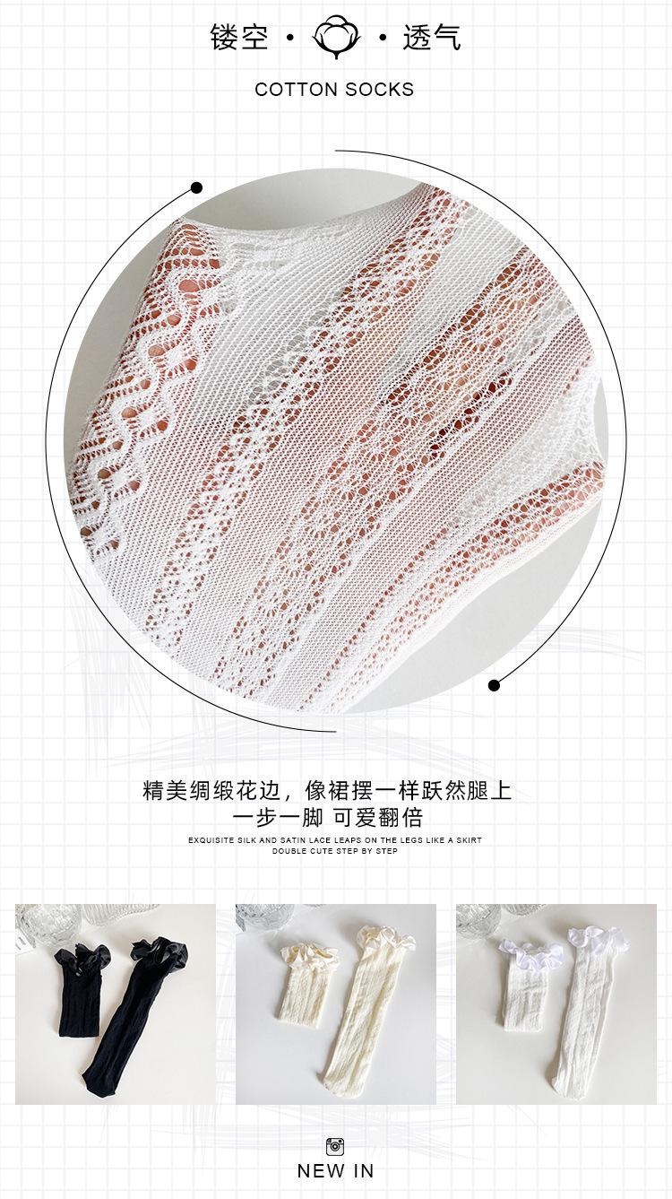 Calcetines finos de verano para niños, de color liso, con encaje, de tubo medio, de malla transpirable, en blanco y negro, huecos, de tubo recto, sin tacón, de princesa