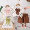 Traje de Lunares para Niñas 2025 Verano Estilo Coreano Tops sin Mangas y Pantalones Ropa Moda Bebé Vacaciones Moderno Ropa Infantil