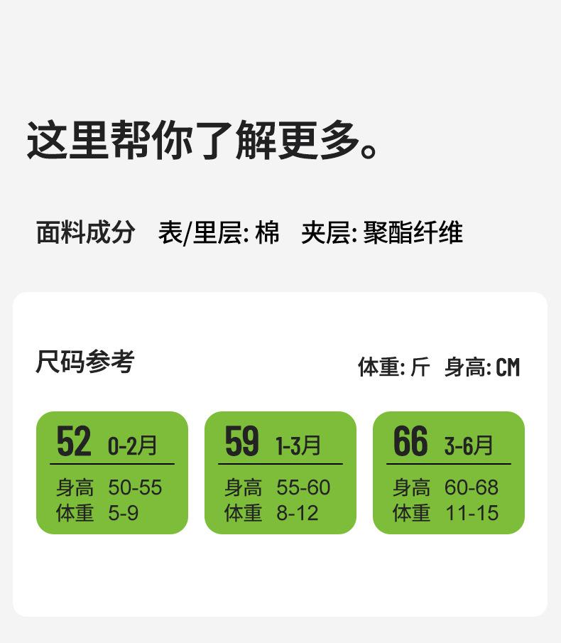52cm[suitable for baby 2.5-4kg ], 59cm[suitable for baby 4-6kg ], 66cm[suitable for baby 6-7.5kg ]