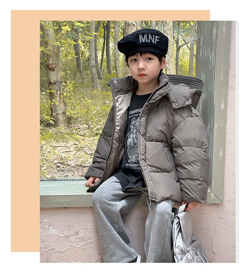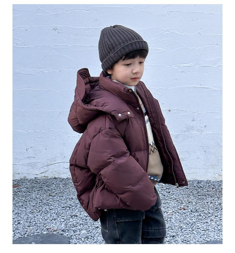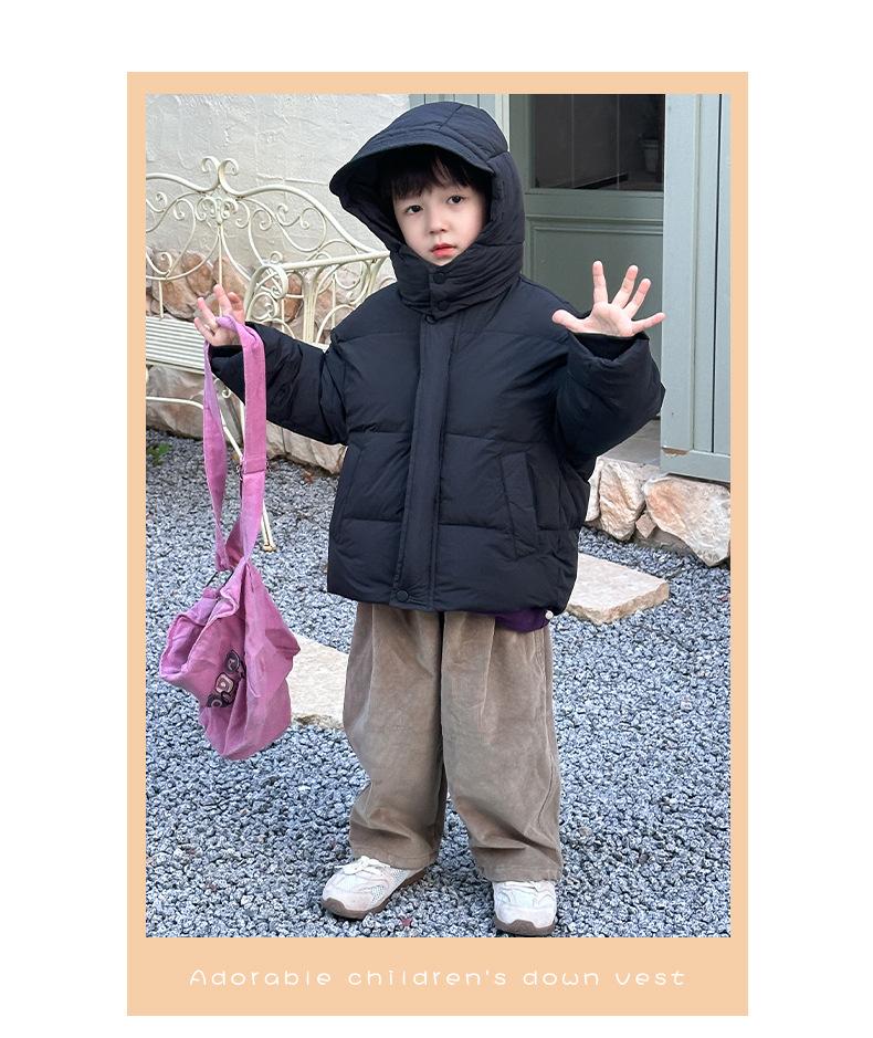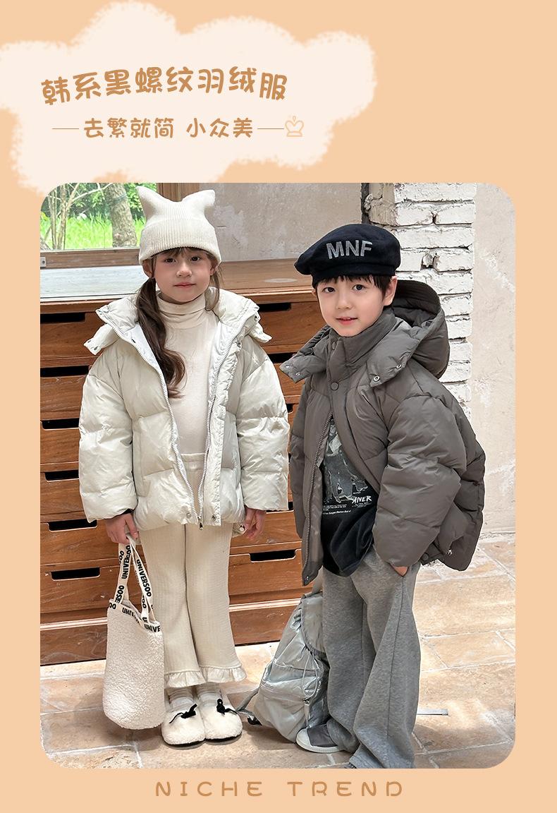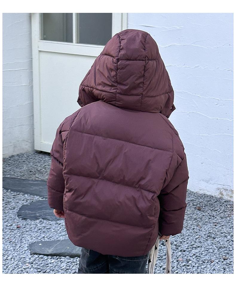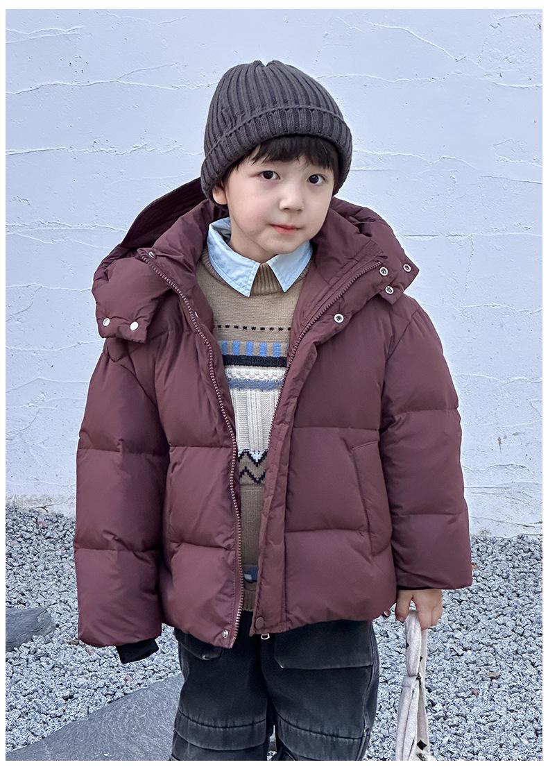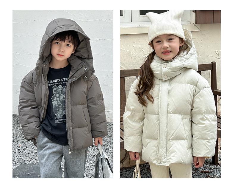 Chaqueta de plumón para niños 2024, nueva chaqueta de invierno coreana fresca, de color sólido, gruesa y cálida con capucha para niños y niñas.