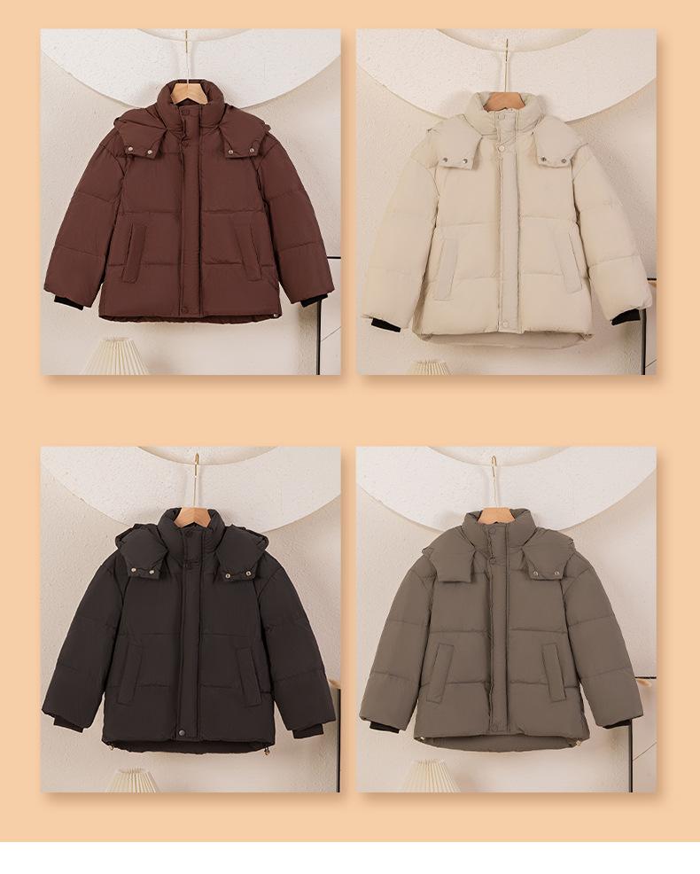 Compra Chaqueta de plumón para niños 2024, nueva chaqueta de invierno coreana fresca, de color sólido, gruesa y cálida con capucha para niños y niñas. al por mayor en Joom.pro