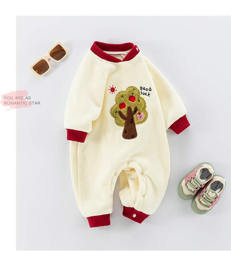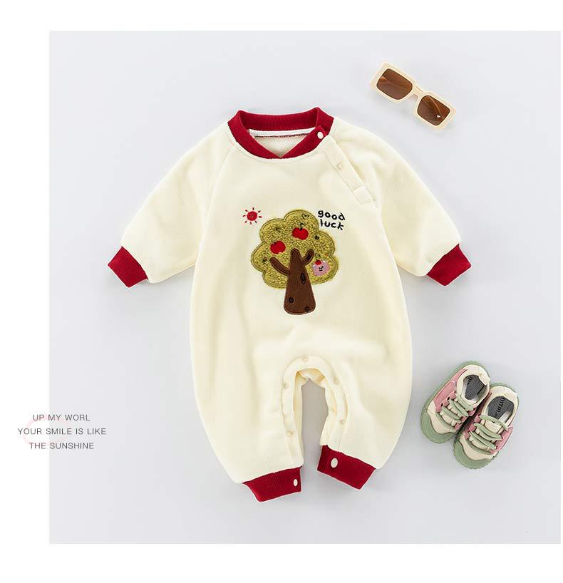 Ropa para recién nacidos, mono de otoño e invierno con forro polar, sencillo, de manzano, para bebé, otoño, ropa infantil, categoría A, ropa de escalada de algodón puro.