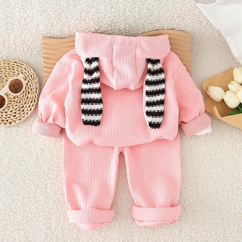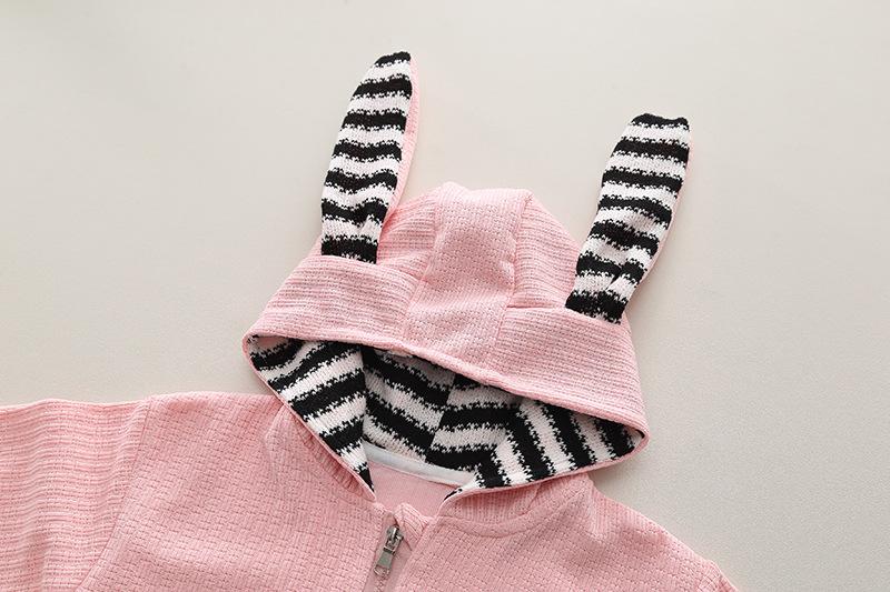 Striped rabbit three-piece set pink