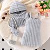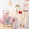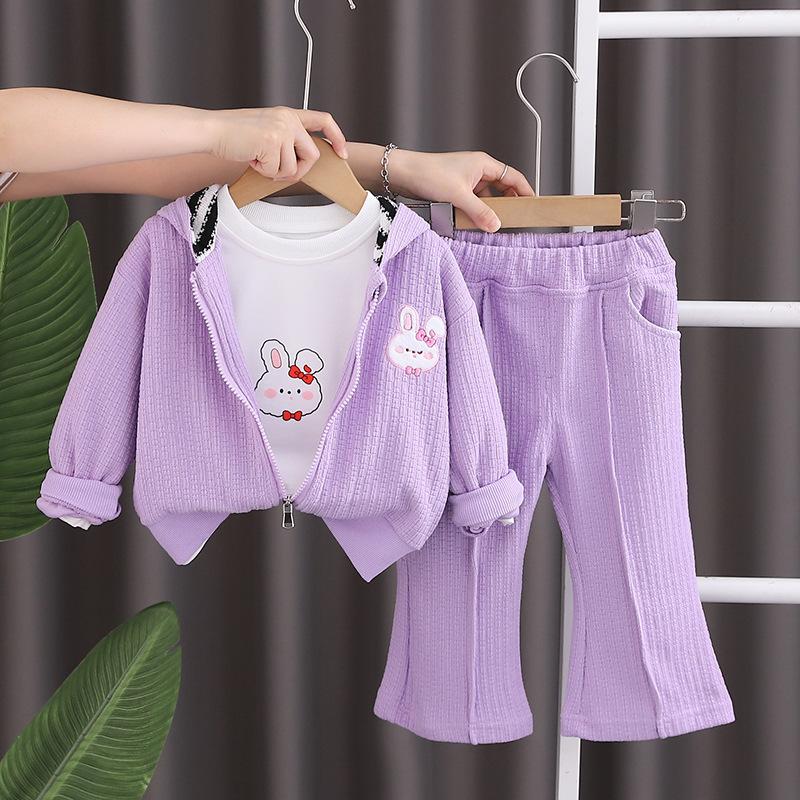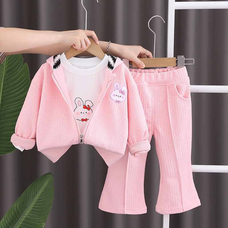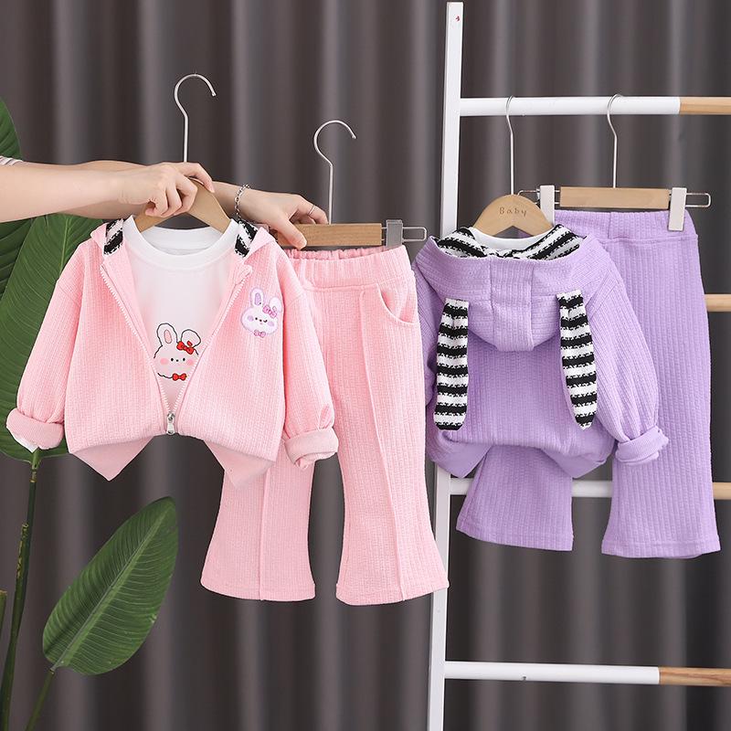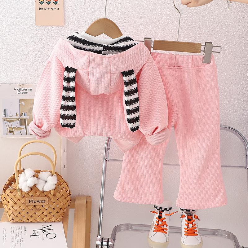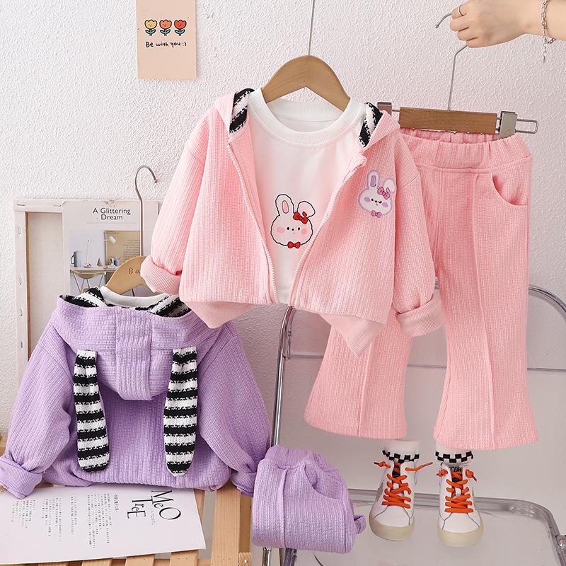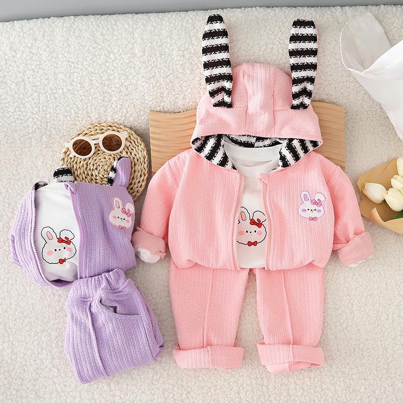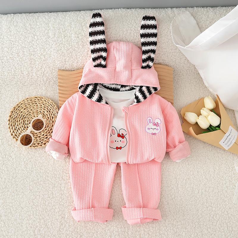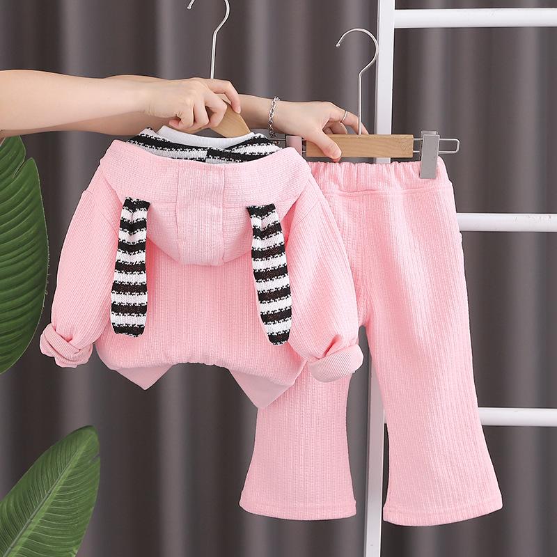 Traje de otoño para niña 2023, nuevo conjunto de tres piezas de conejo a rayas para niños, abrigo informal de otoño para bebé, moda