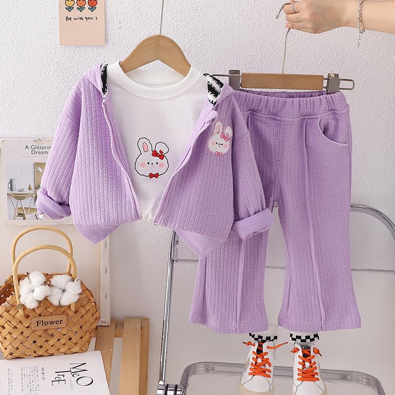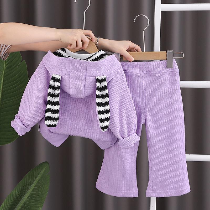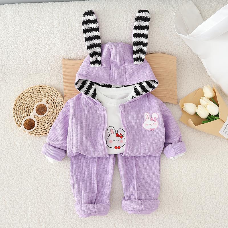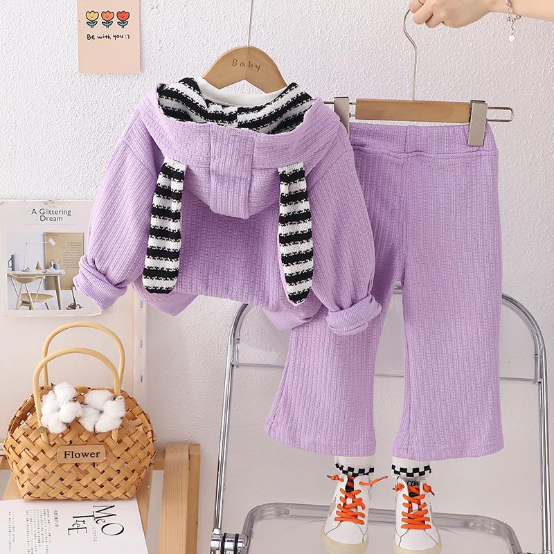 Striped rabbit three-piece set purple