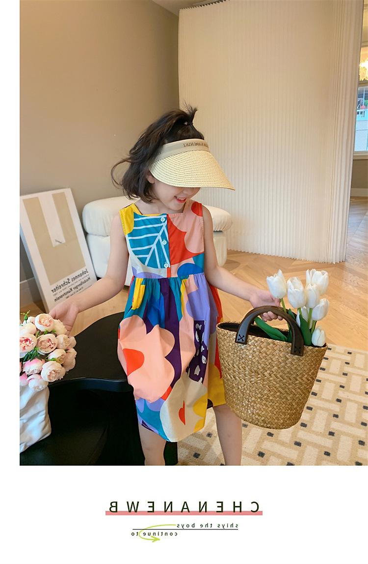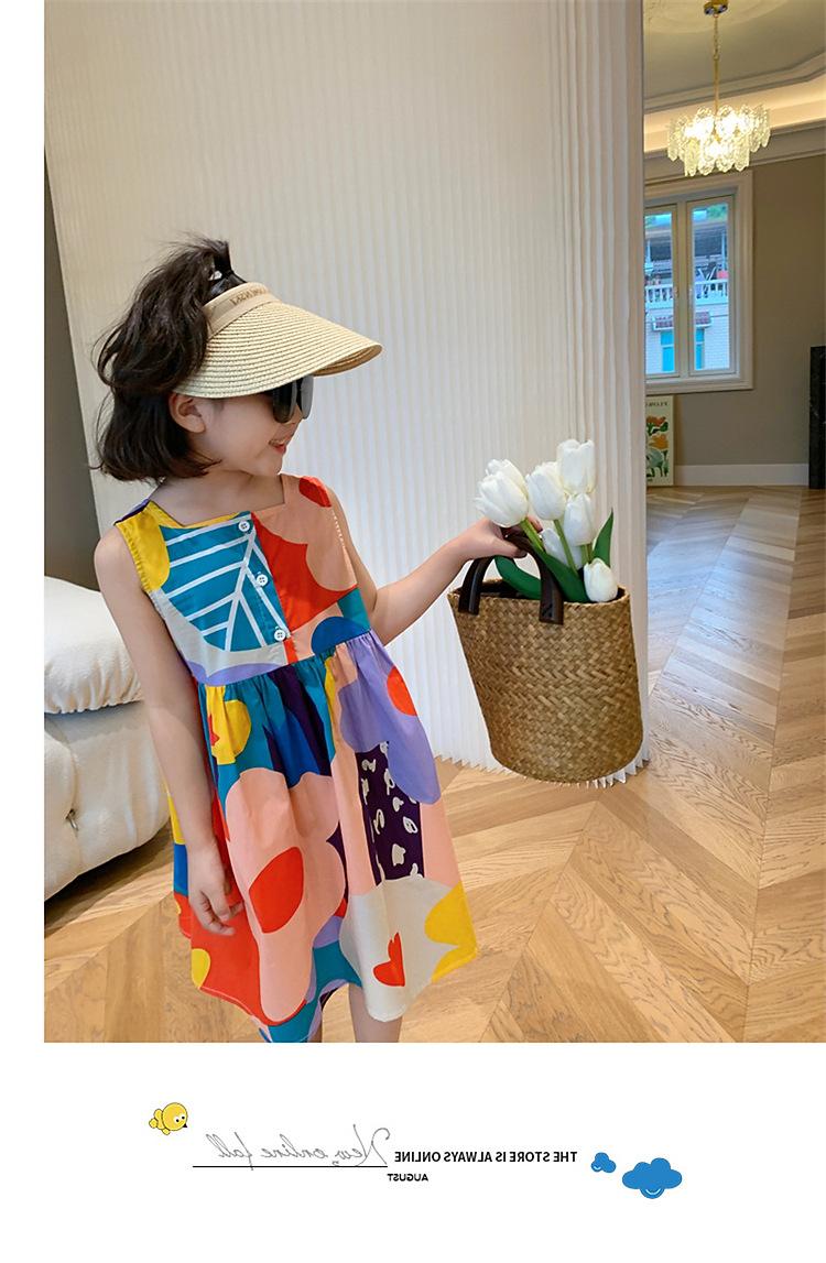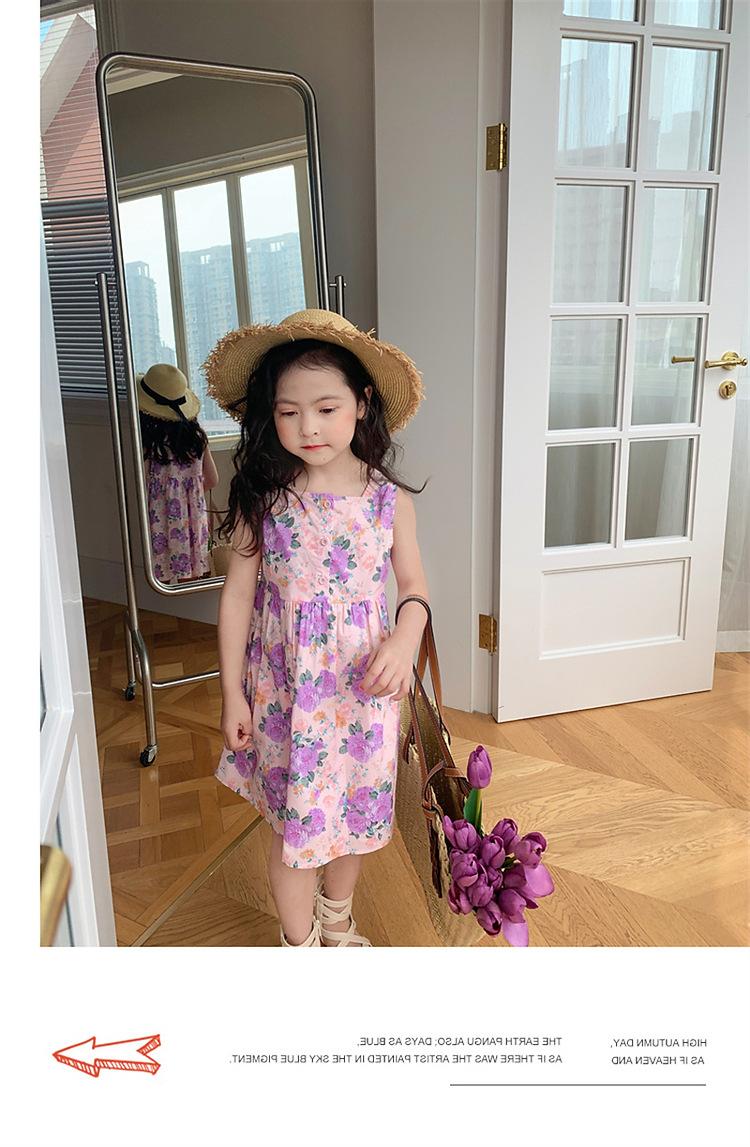 Vestido de chaleco para niña, verano 2024, nuevo, estilo occidental, sin mangas, para bebé, vestido de princesa floral de moda.