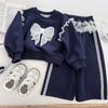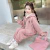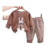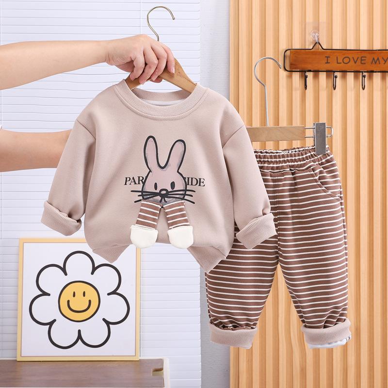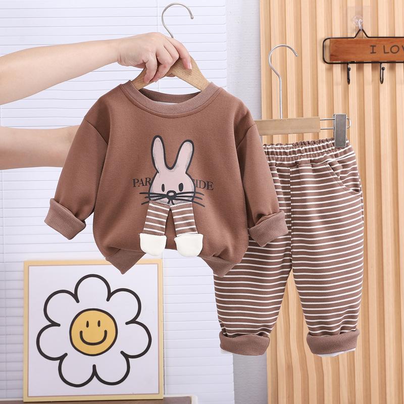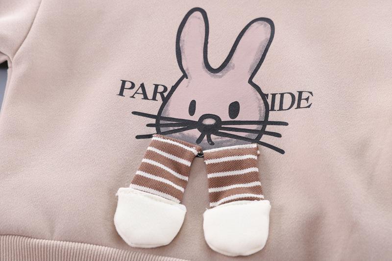 Conjunto de dos piezas de pantalones a rayas para niñas, otoño 2024, con diseño de conejo de dibujos animados en tres dimensiones