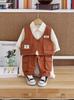 Traje de camisa para niño primavera y otoño 2024 nuevo estilo coreano para niños estilo extranjero chaleco casual para bebés de tres piezas de moda