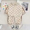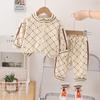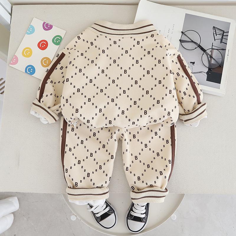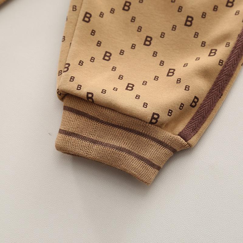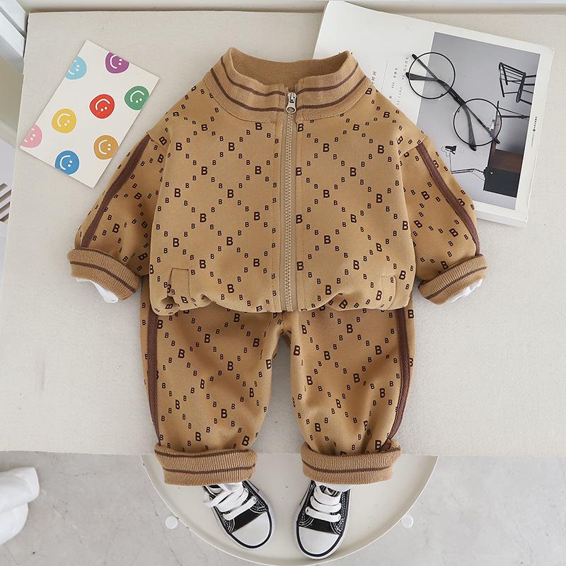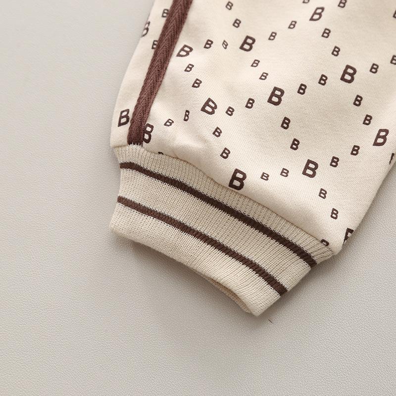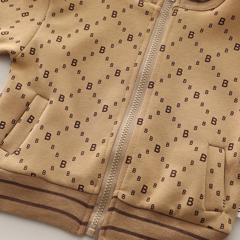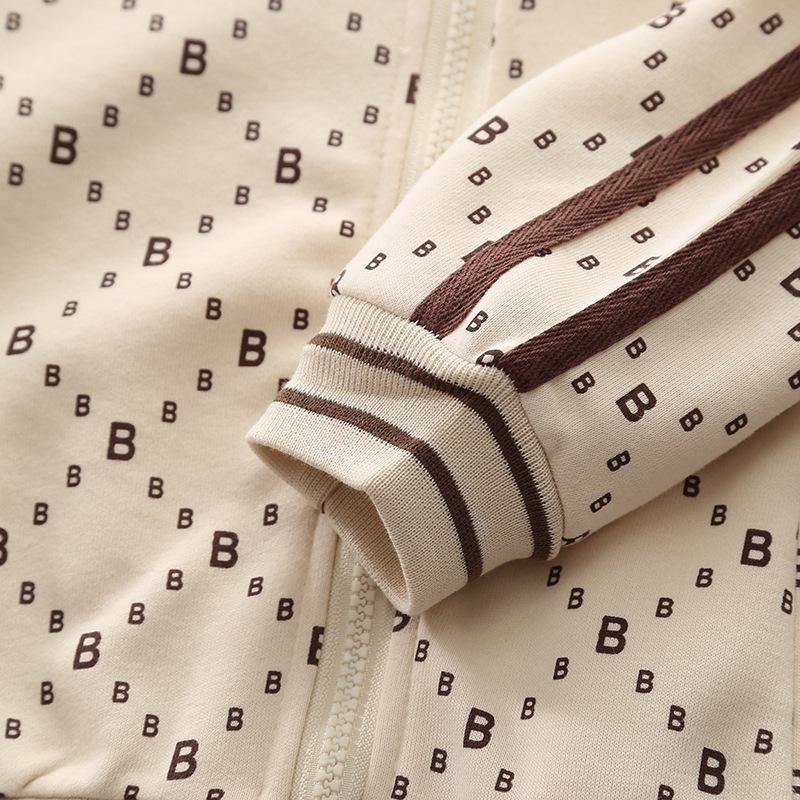 Long sleeve all-over printed B zipper two-piece set brown, Long-sleeved all-over printed B zipper two-piece se...