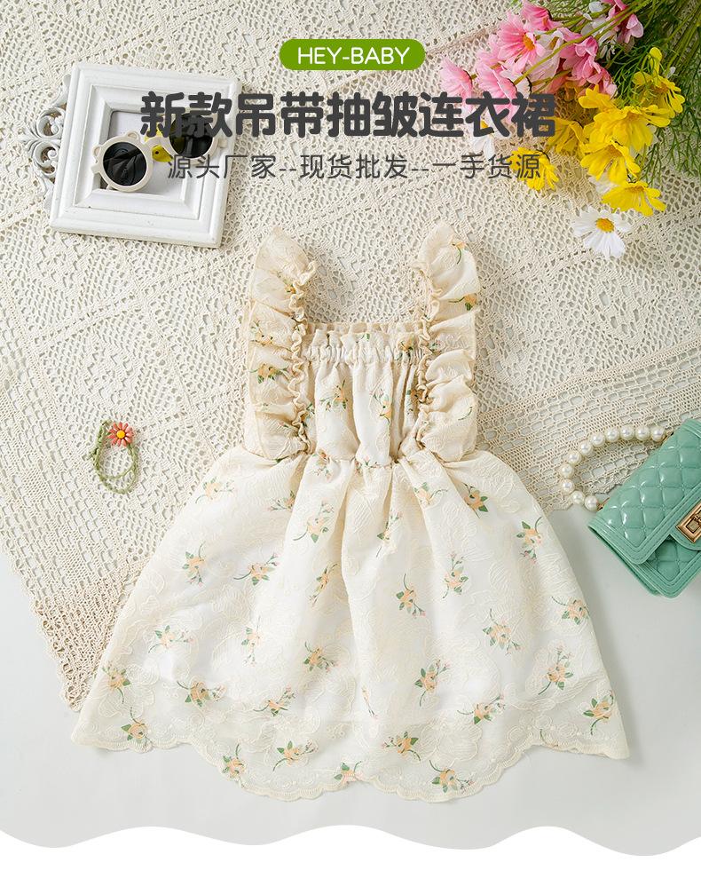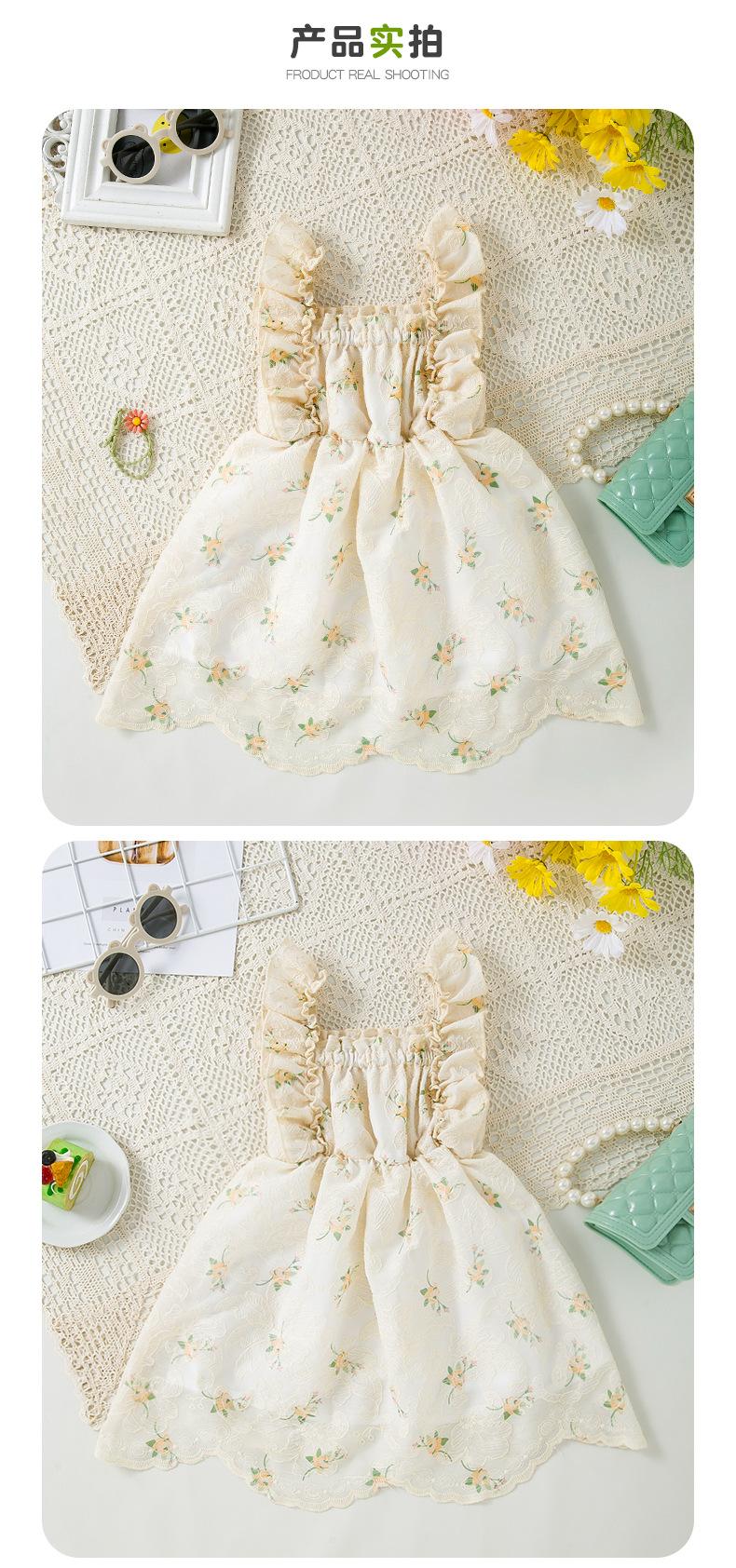 Vestido de Princesa Coreano Nuevo para Niñas Bebé Primavera y Verano 2024 Manga Volante Estampado Floral Pequeño Vestido Lindo a la Moda Trendy