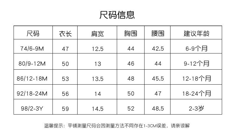 74(6-9M), 80(9-12M), 86(12-18M), 92(18-24M), 98(2-3Y)