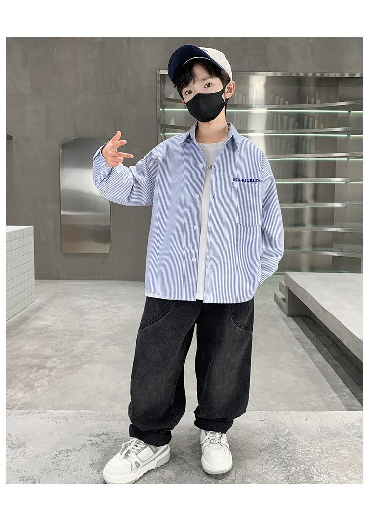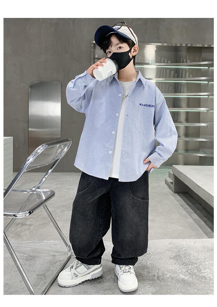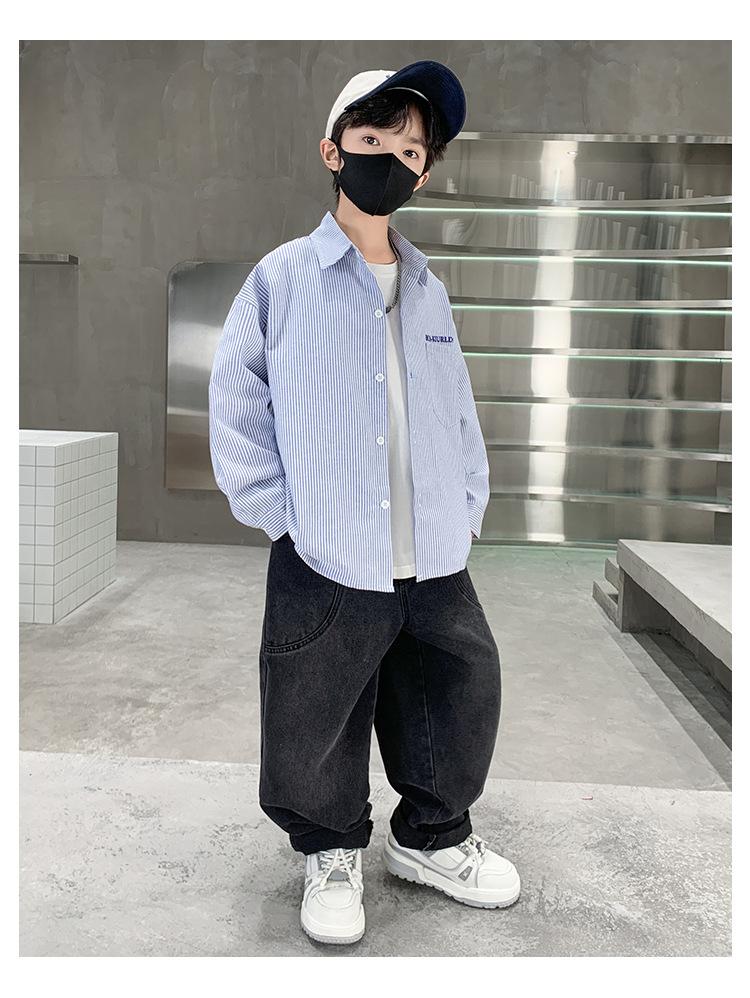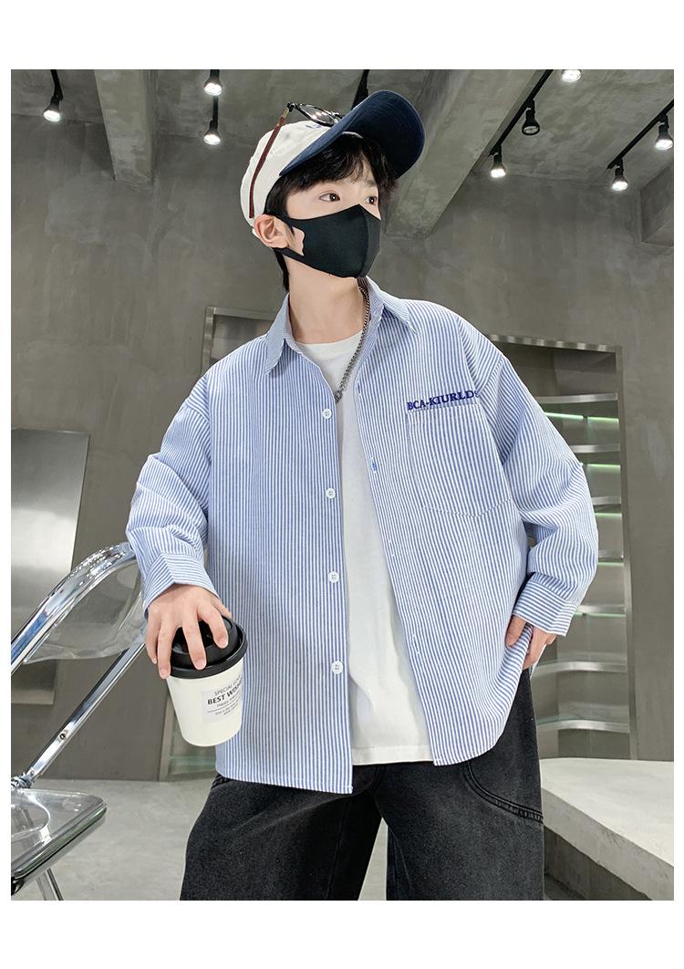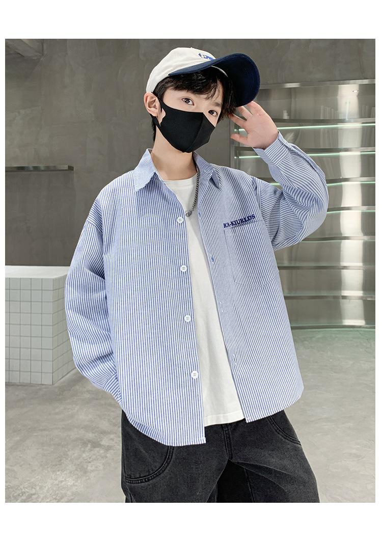 Camisa a rayas de otoño para niño, nueva camisa bordada para niño, abrigo estilo coreano, top de moda