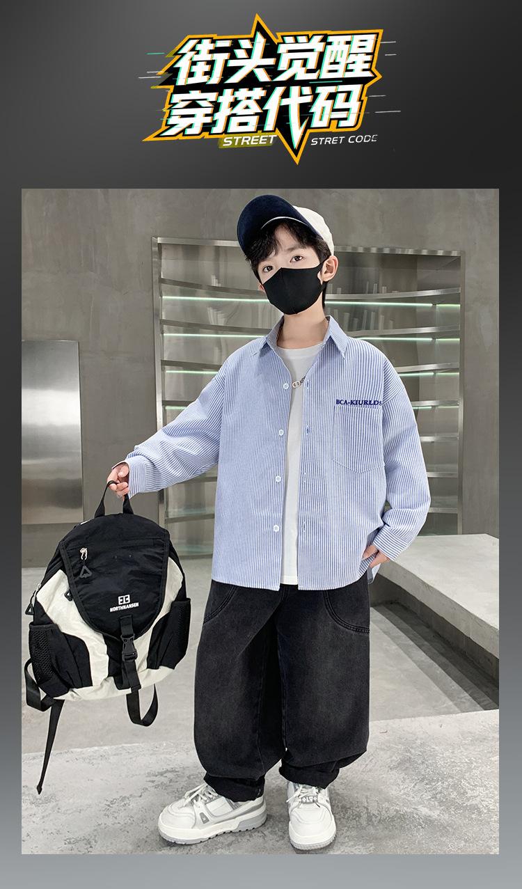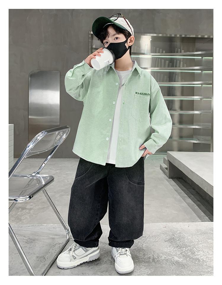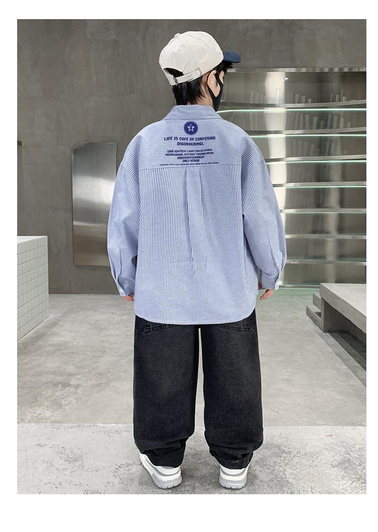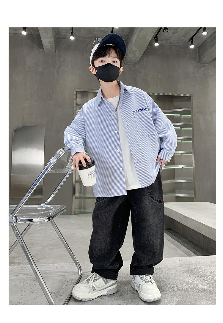 Camisa a rayas de otoño para niño, nueva camisa bordada para niño, abrigo estilo coreano, top de moda