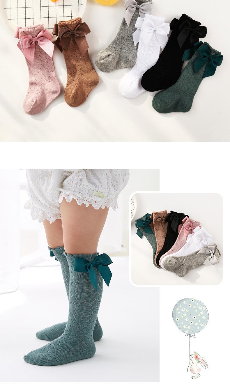 Calcetines de verano de malla fina para niñas, con lazo, de longitud media, de princesa, para bebés, España