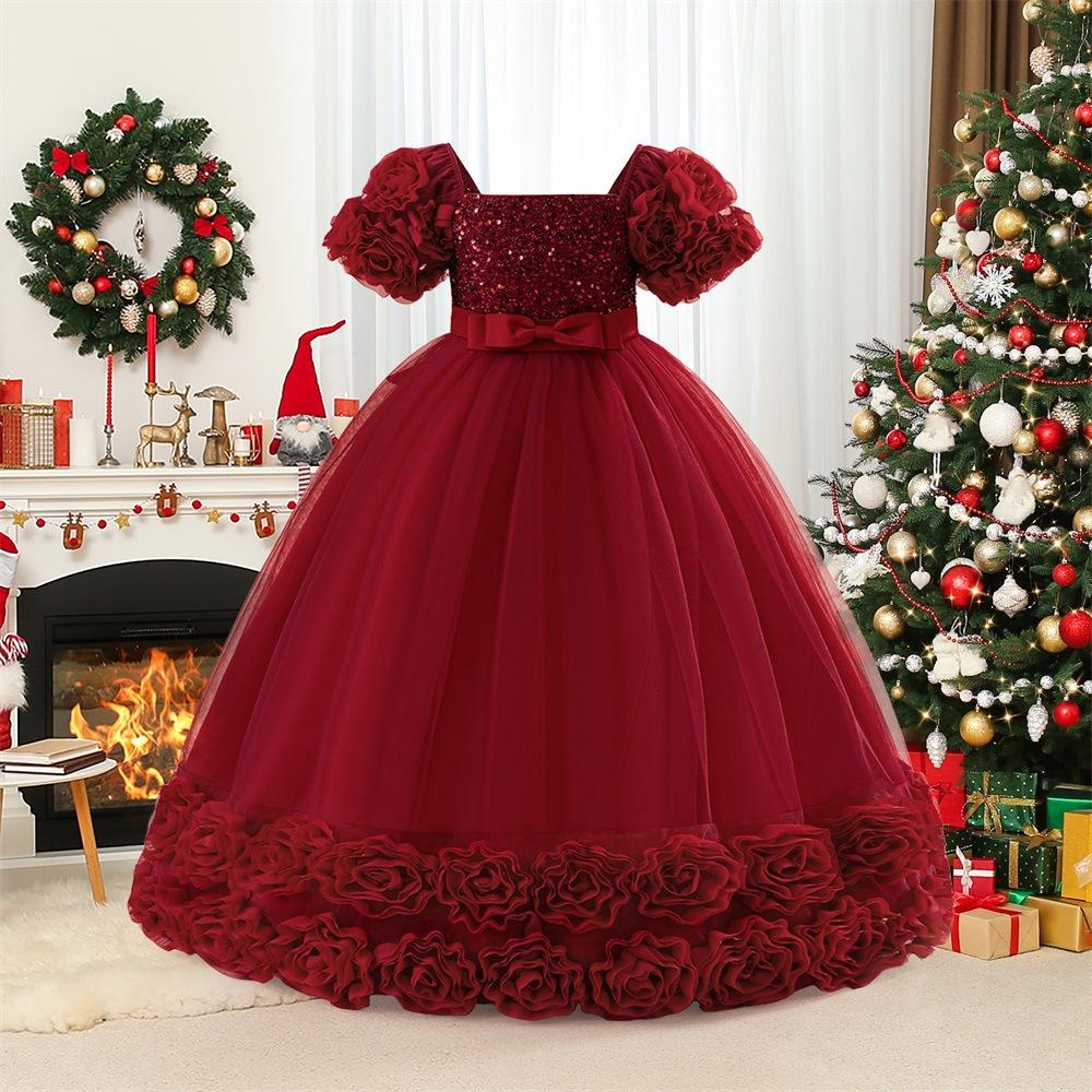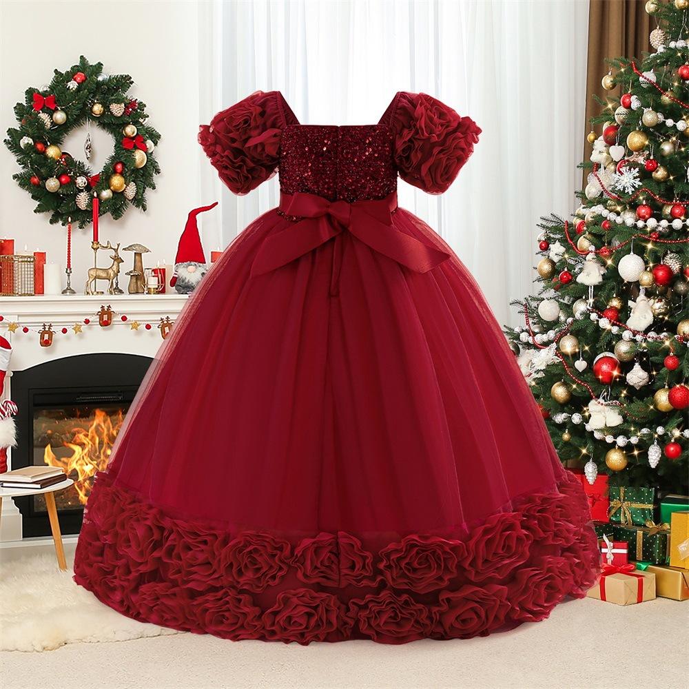 Vestido de princesa para niñas, estilo europeo y americano, con lentejuelas, para bodas, fiestas de cumpleaños y otras ocasiones especiales.