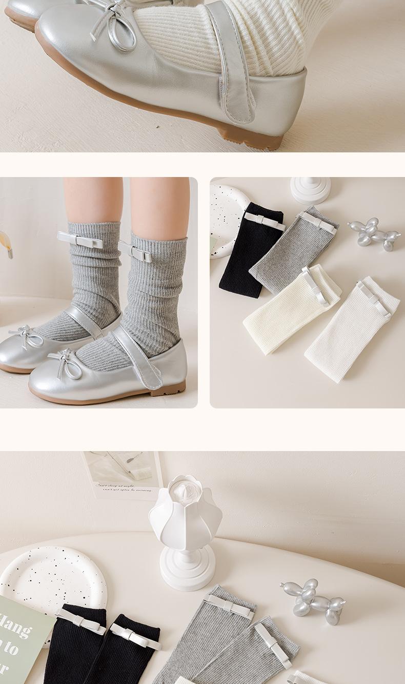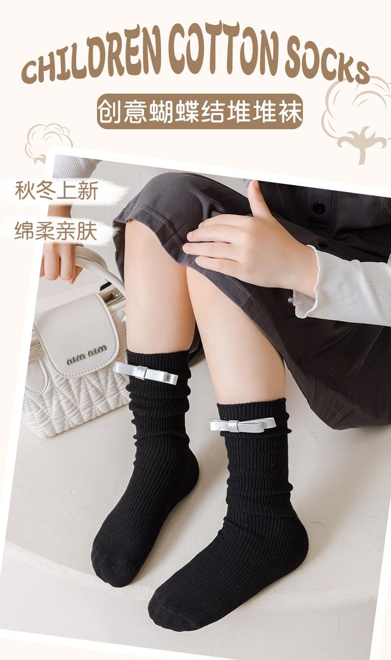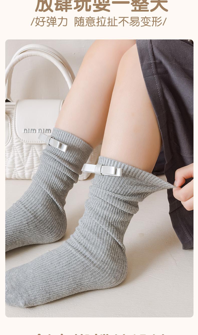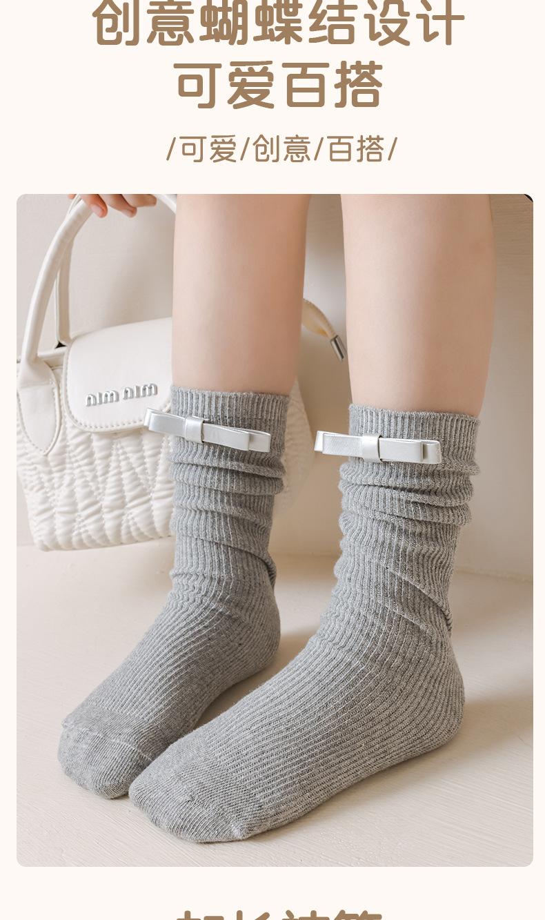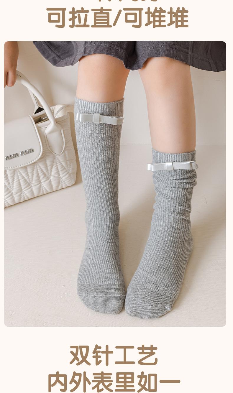 24 calcetines nuevos de otoño e invierno para niñas, de algodón con lazo, apilables, de doble aguja y combinables, largos y dulces.