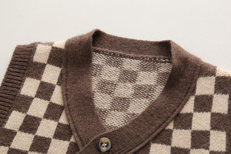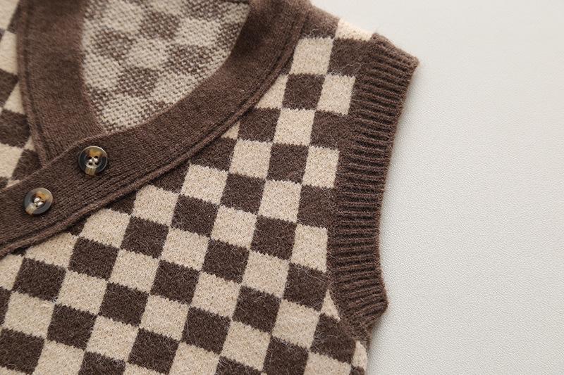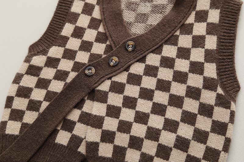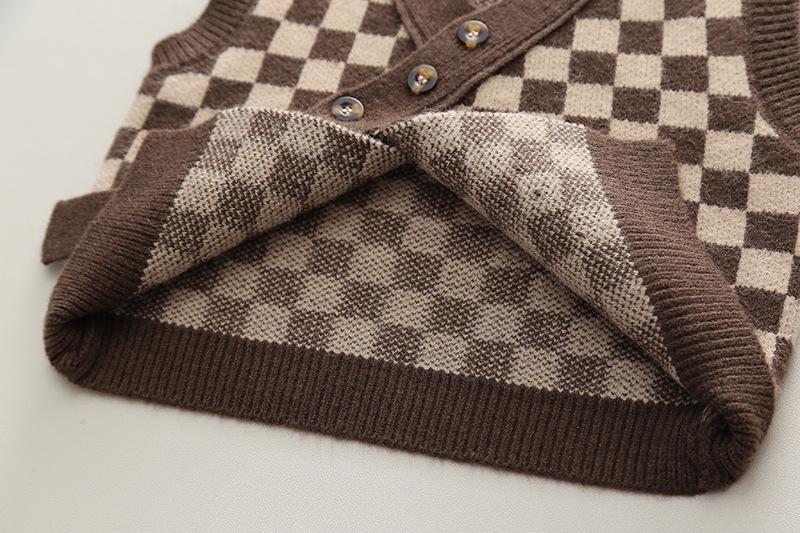 Sweater plaid ribbon three-piece set Brown, Sweater plaid ribbon three-piece black