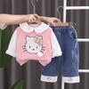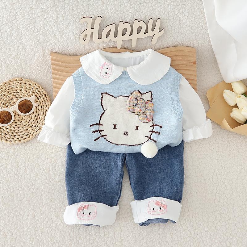 Bow cat sweater three-piece set pink, Bow cat sweater three-piece set blue