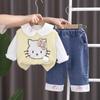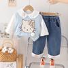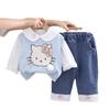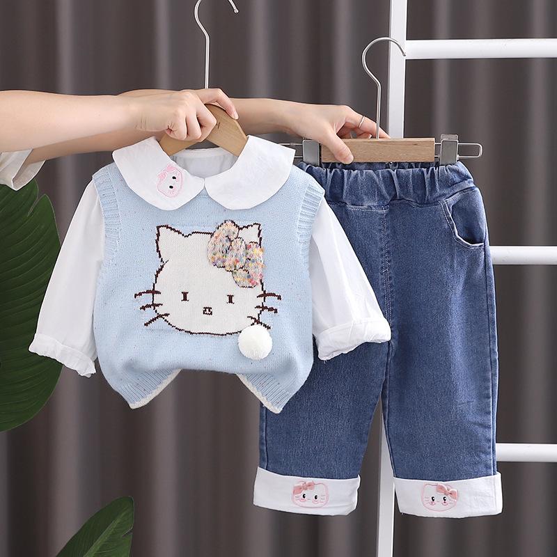 Bow cat sweater three-piece set blue