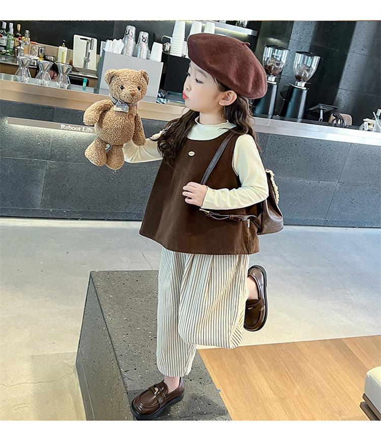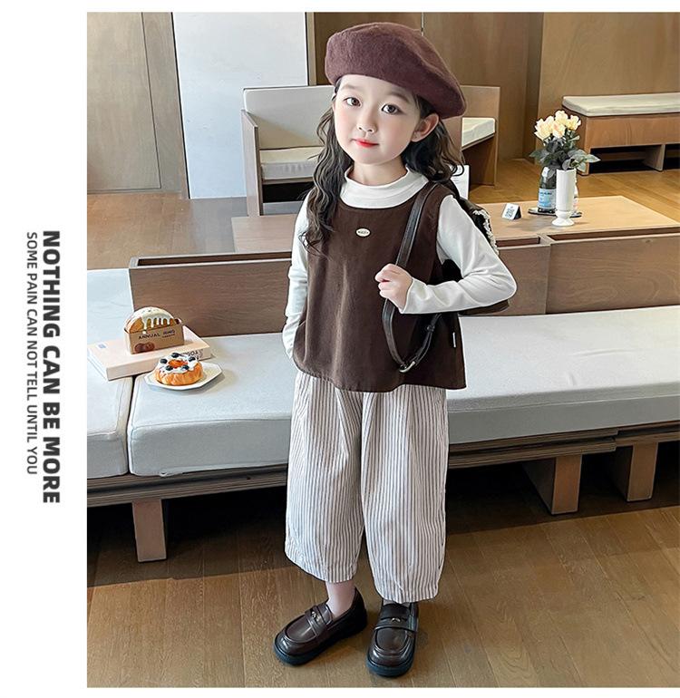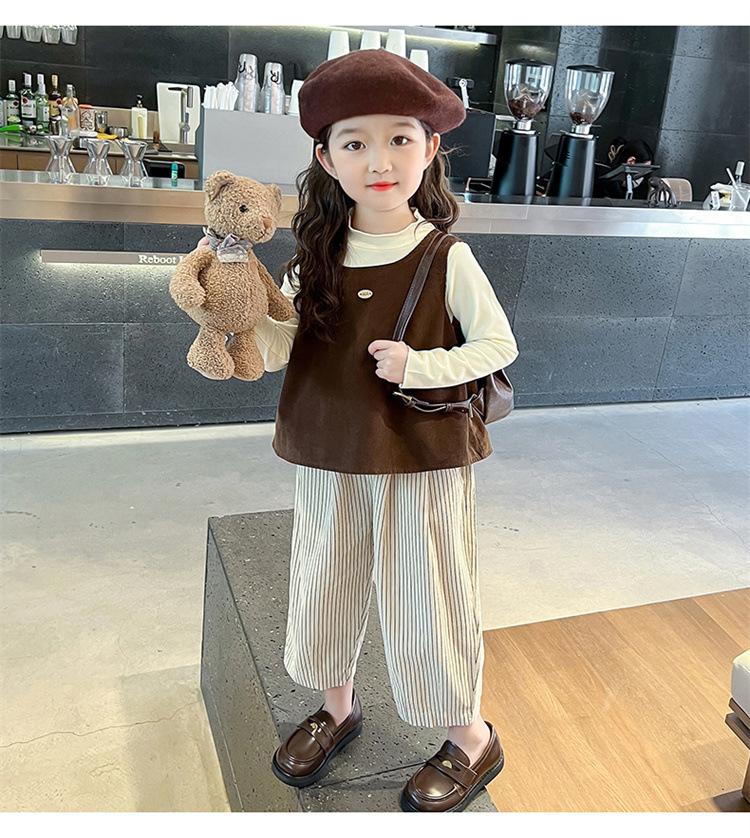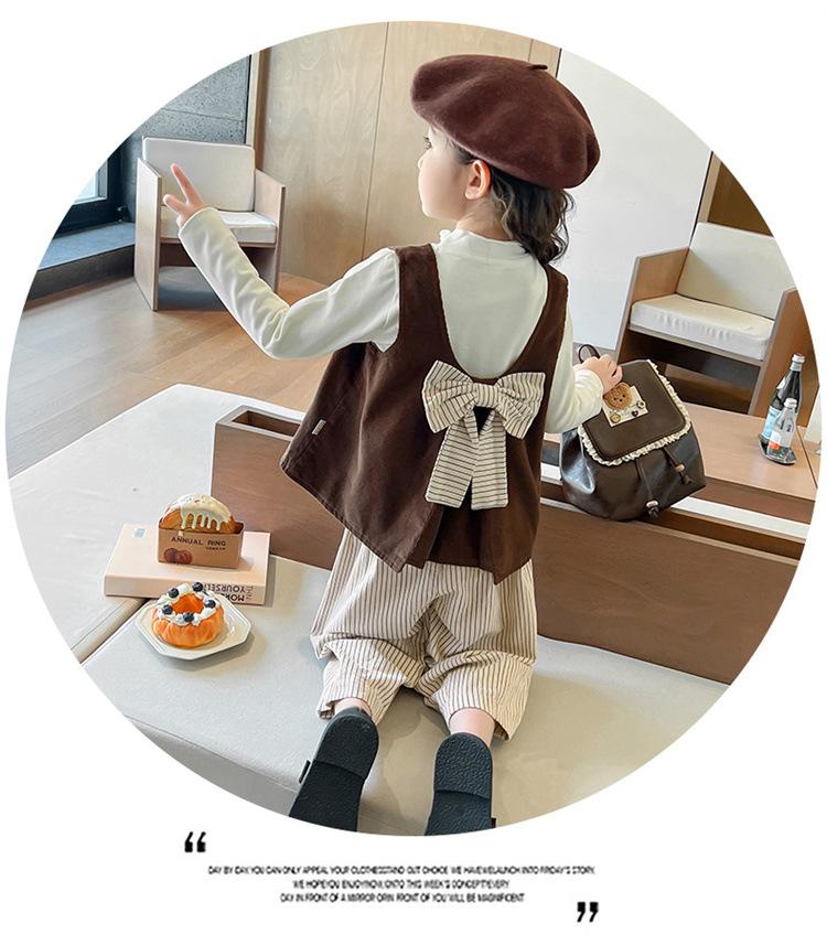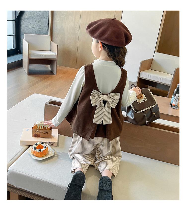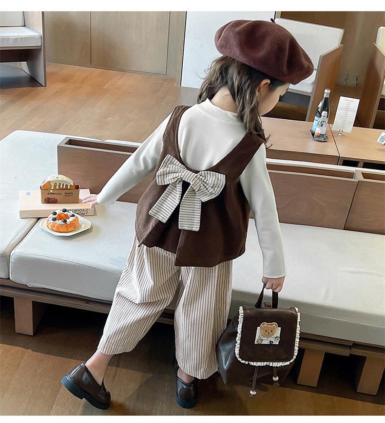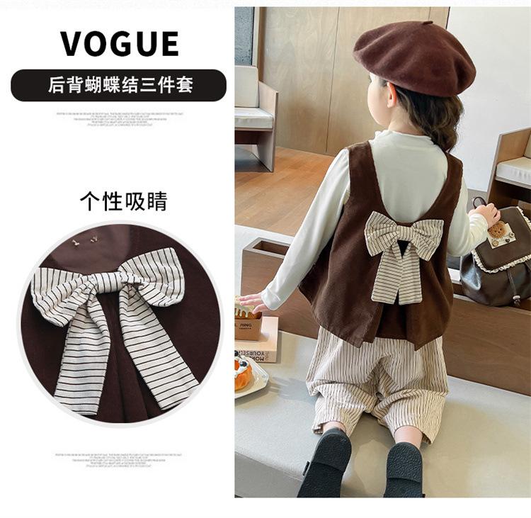 Traje para Niña Primavera y Otoño 2024 Nueva Moda Traje de Tres Piezas para Niña Pequeña con Lazo en la Espalda Tendencia Ropa Infantil para Niños de Talla Pequeña y Mediana