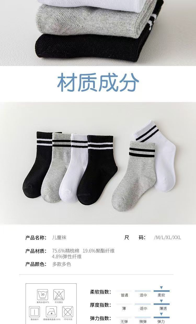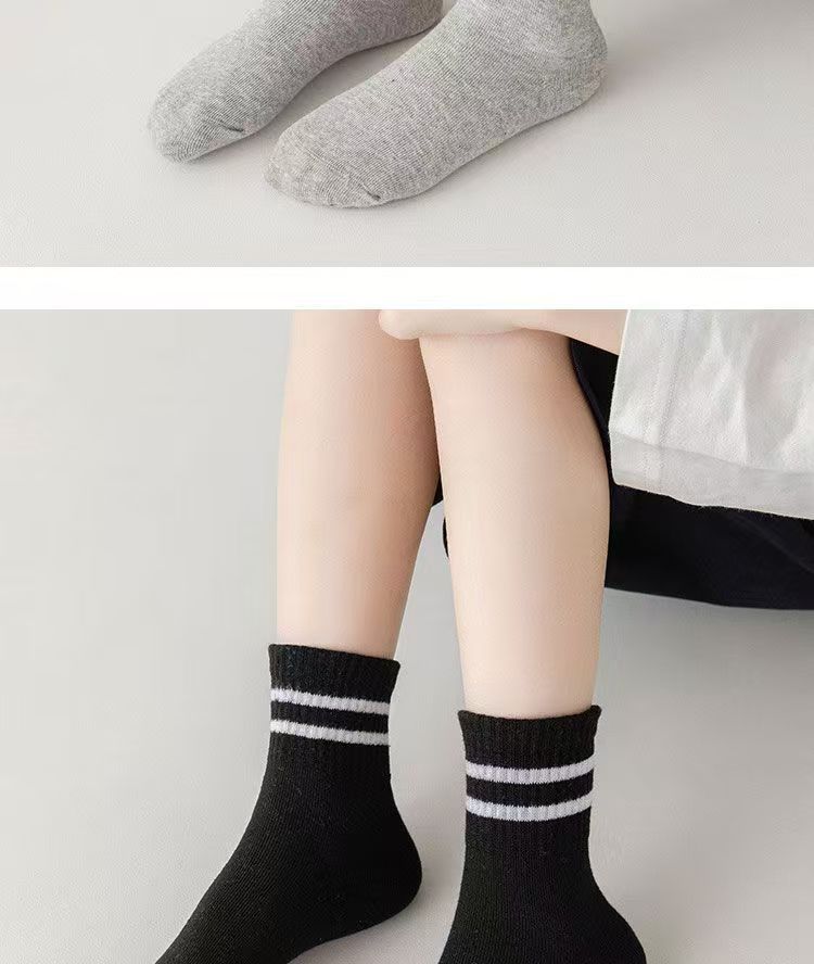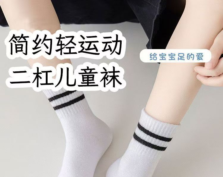 Calcetines blancos de dos barras para estudiantes, calcetines deportivos de tubo de primavera y verano para niños, calcetines de punto para niños y niñas, fabricantes al por mayor