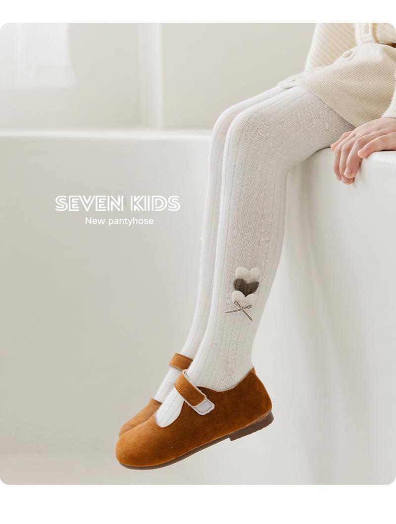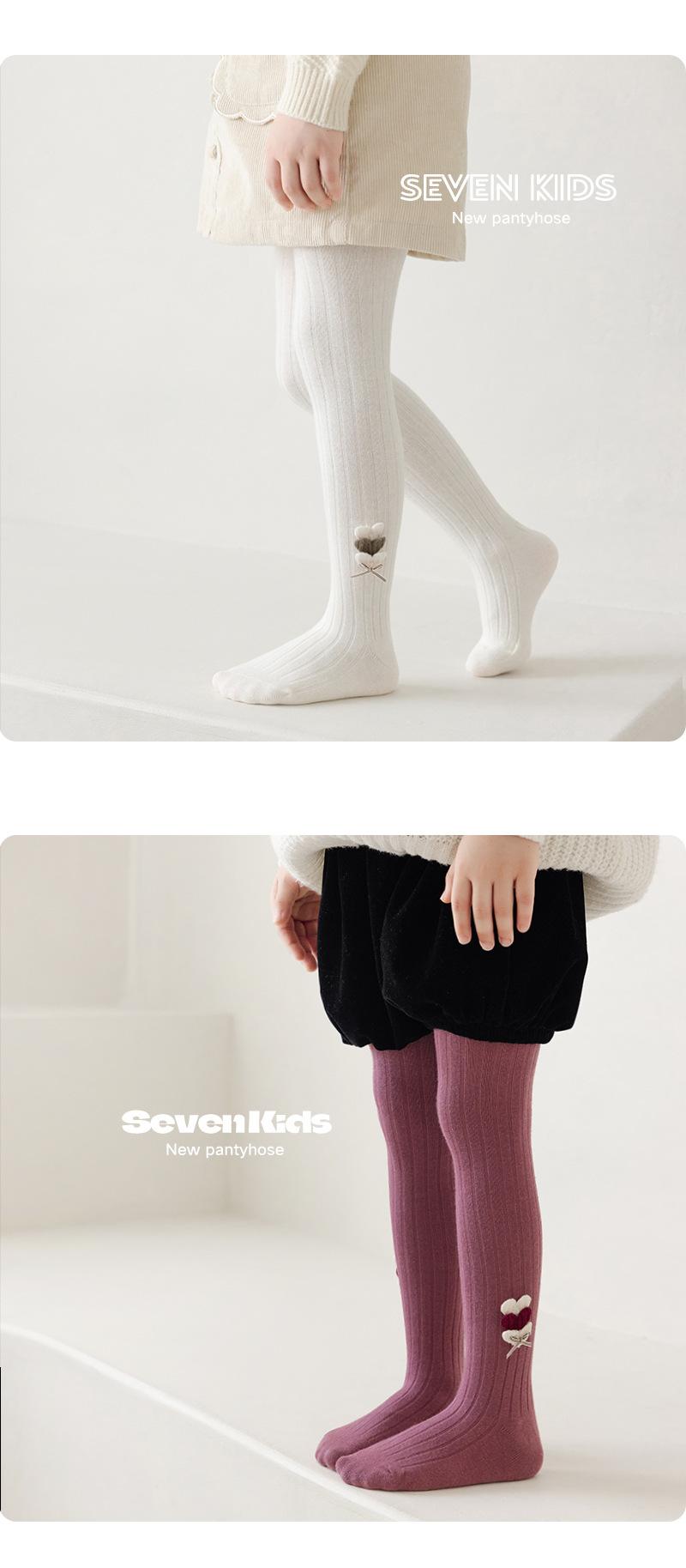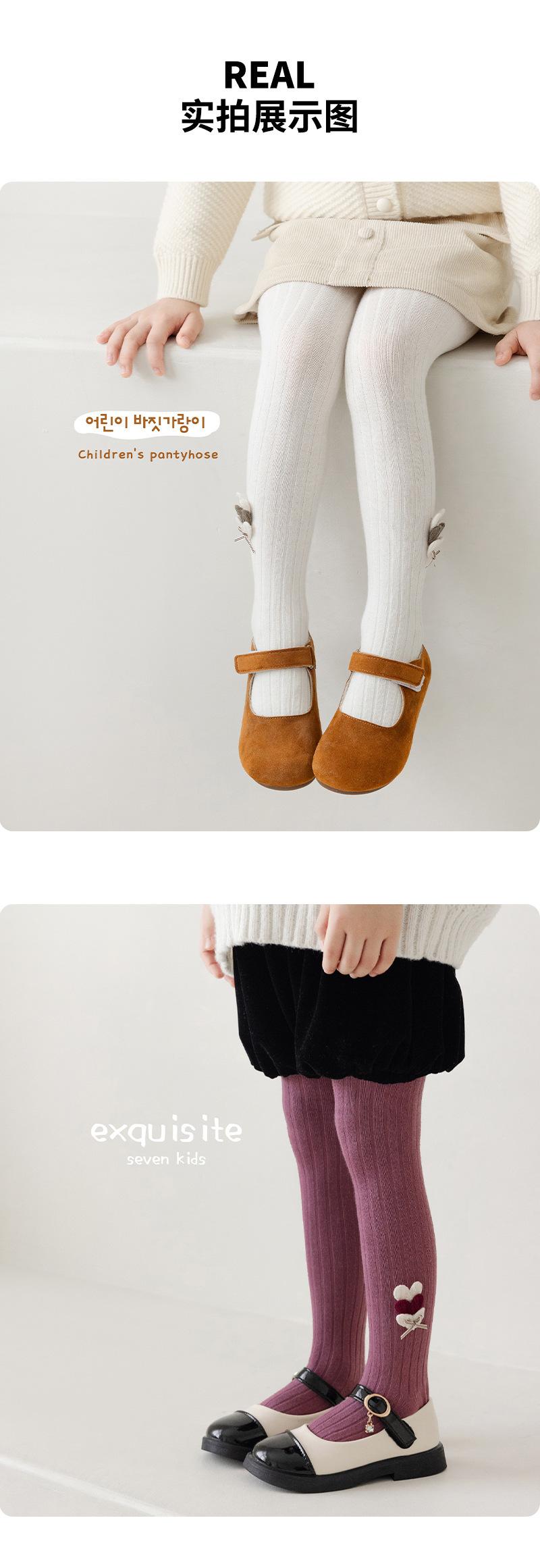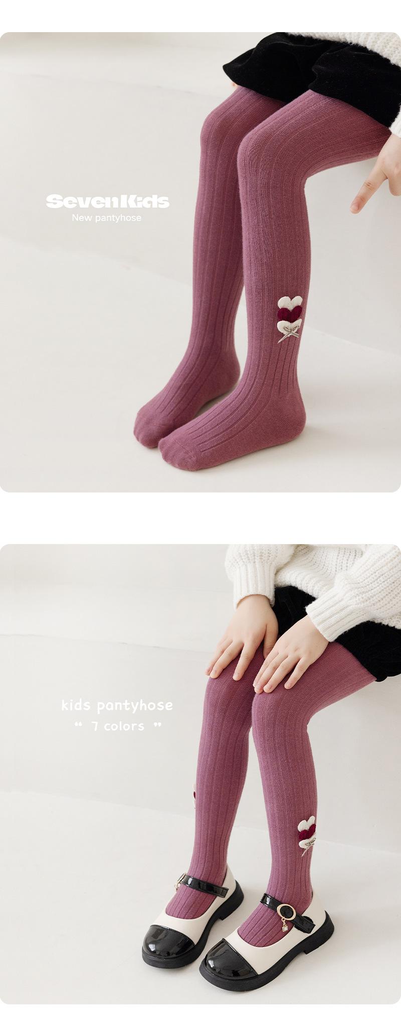 Jewelry Love Leggings de Algodón Peinado para Niñas Otoño e Invierno 2024 Nuevo Dulce Color Sólido Pantimedias para Niñas