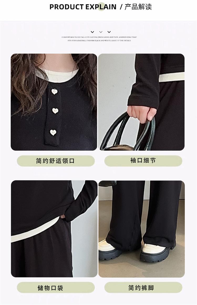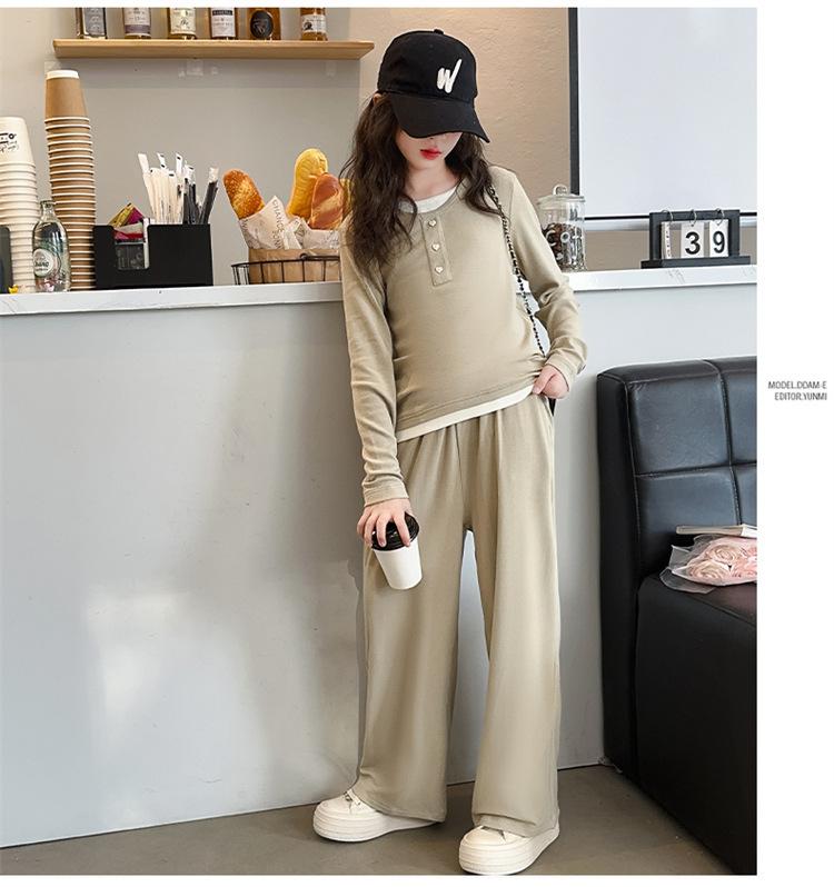 Compra Traje casual de otoño para niñas, primavera y otoño 2024, estilo occidental, conjunto de dos piezas con pantalón ancho y parte superior falsa para niñas al por mayor en Joom.pro